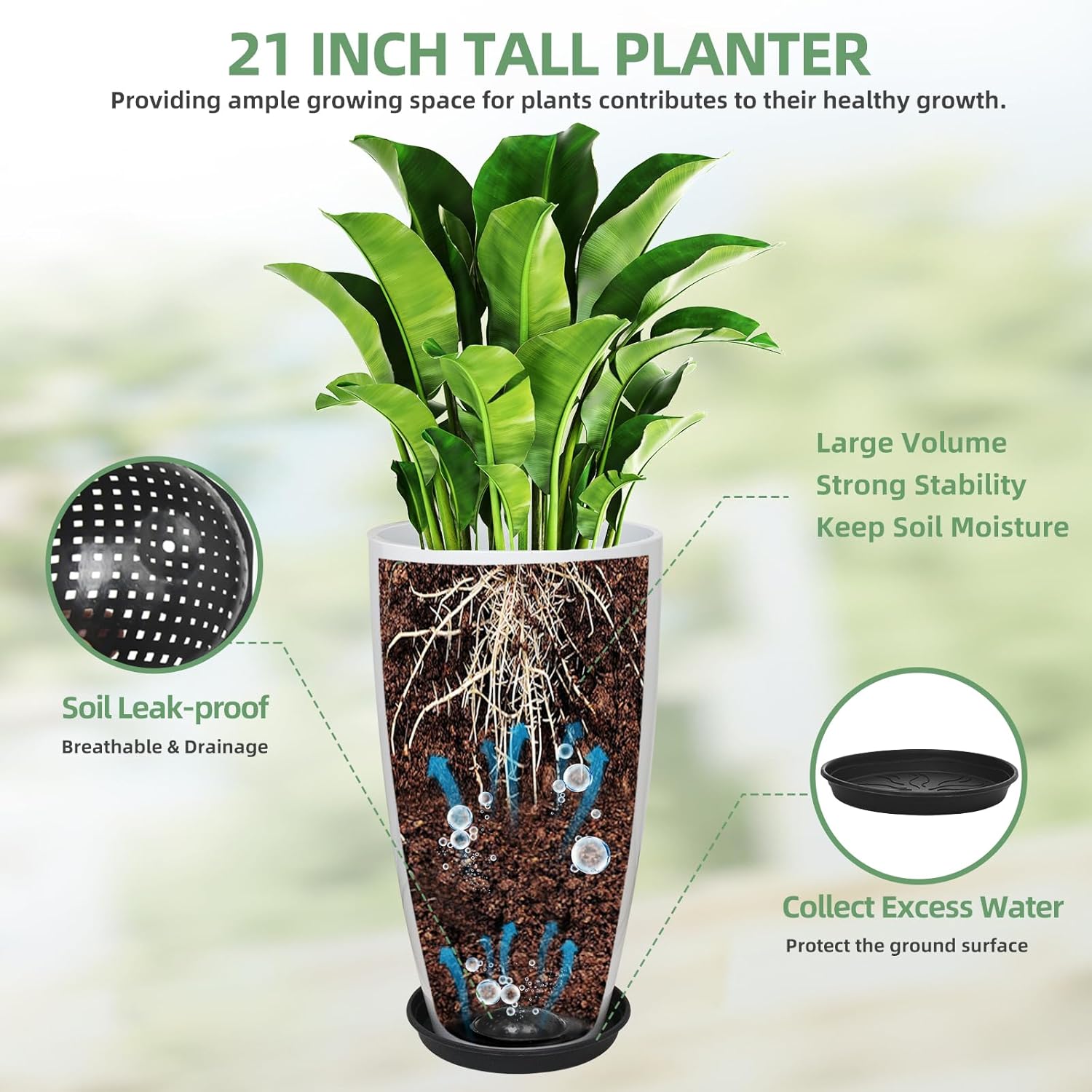 - Durable Tall Planter: Crafted from high-quality recycled plastic material, strong durability. These tall planters for outdoor plants have a lightweight and sturdy structure, resistant to deformation, weathering, and fading.