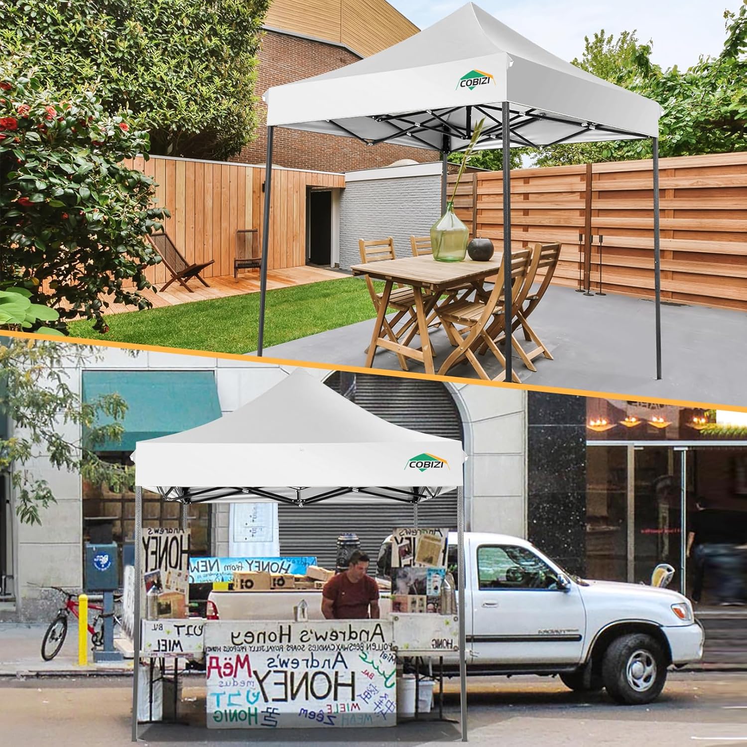 COBIZI 6.6x6.6 Pop Up Canopy Without Sidewall,Heavy Duty Canopy UPF 50+ All Season Wind Waterproof Commercial Outdoor Party Tents for Parties Canopy Gazebo with Storage Bag(6.6 x 6.6 ft White)