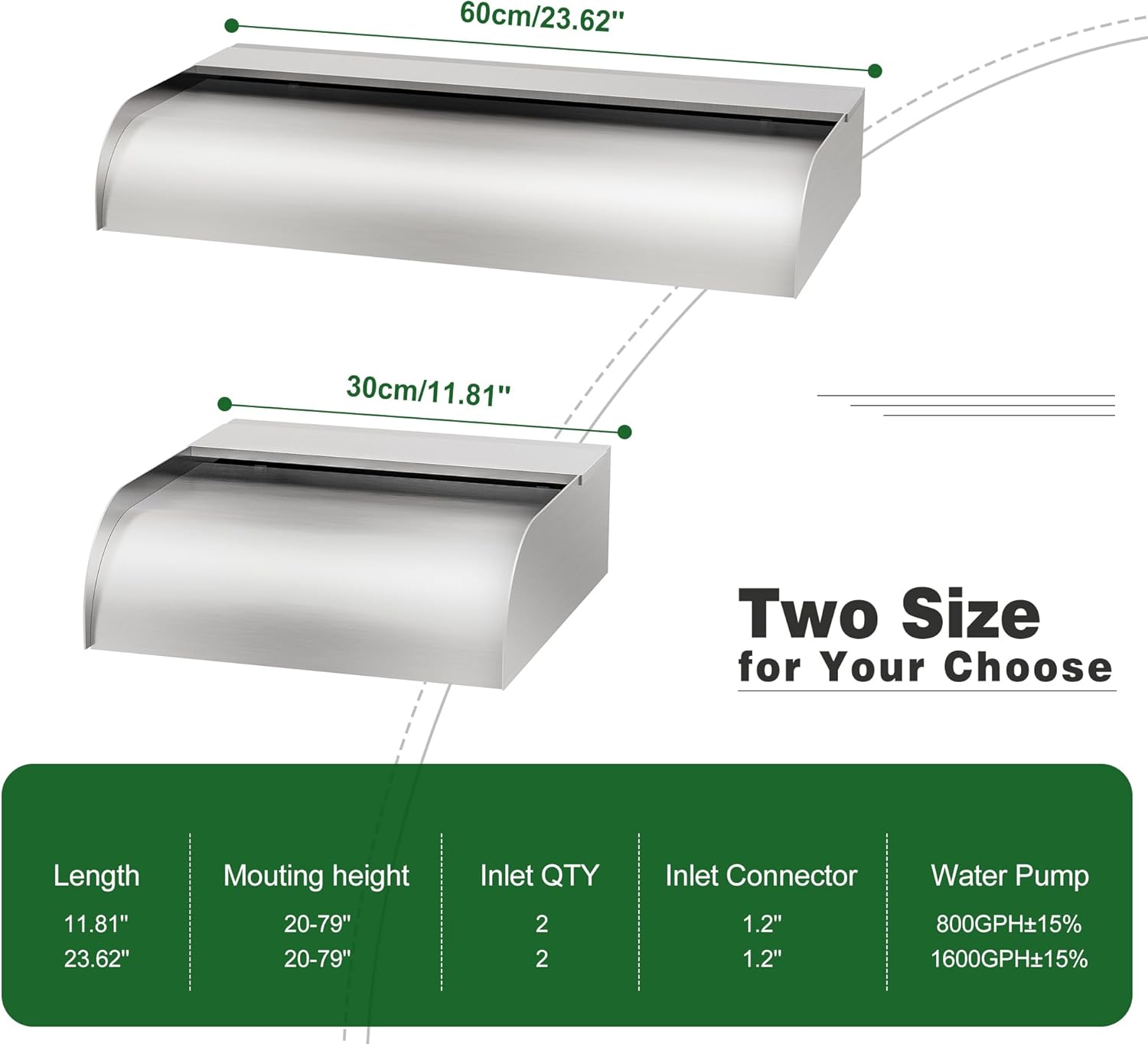 - ăOne Year Replacement Committmentă- This elegant cascading water feature requires a separately obtained pump for operation. We stand behind our products, and our dedicated support team is available to address inquiries regarding this product, offering prompt responses within a day. Please browse our other products for pool fountain accessories in our store. Waterfall only. LED light strips additional purchase.