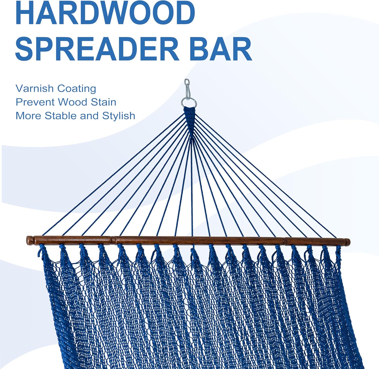 Lazy Daze Hammocks 10.5 FT Double 2 Person Caribbean Rope Hammock, Hand Woven Polyester Hammock with Spreader Bars, for Outside Outdoor Backyard Patio Poolside,450 LBS Capacity, Blue