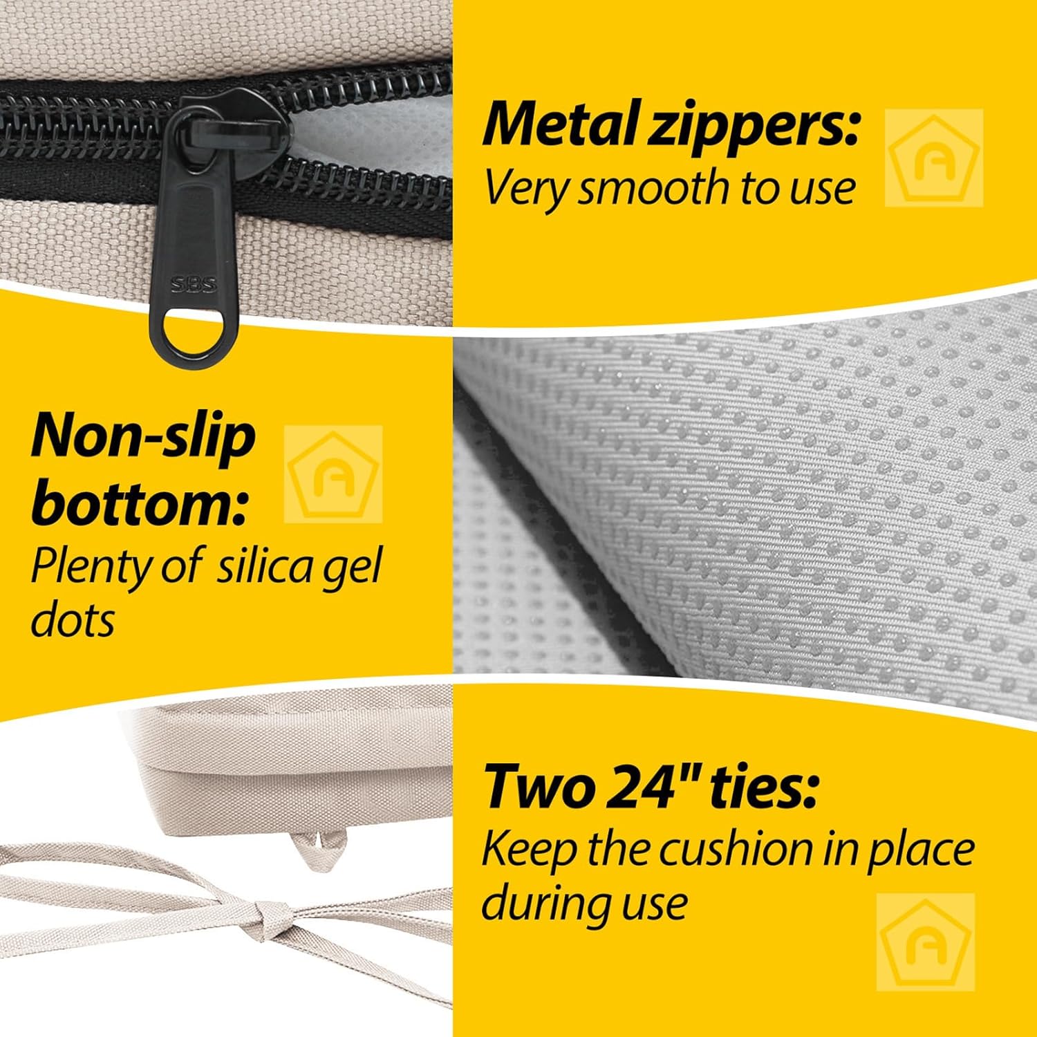 - Waterproof & Removable Cover: Durable, breathable polyester with a waterproof coating, UV protection, and fade resistance for lasting outdoor use. The zippered cover allows easy cleaning and replacement, with hidden zippers for a seamless look