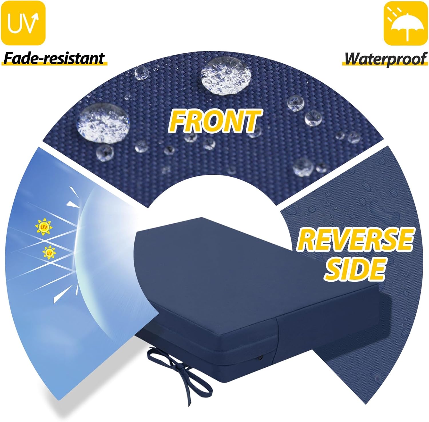 - Waterproof & Removable Cover: Durable, breathable polyester with a waterproof coating, UV protection, and fade resistance for lasting outdoor use. The zippered cover allows easy cleaning and replacement, with hidden zippers for a seamless look