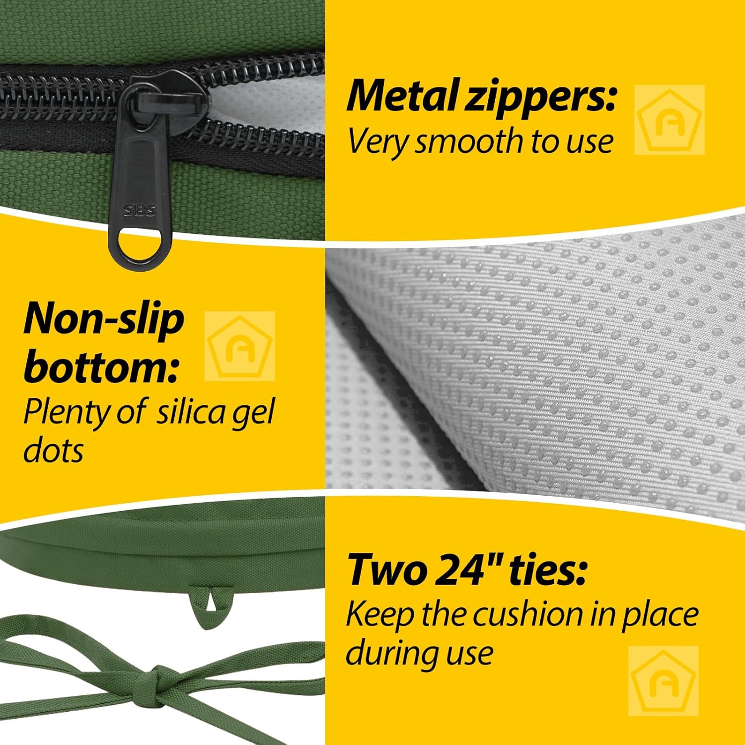 - Non-slip Ties and Piped Edge: The two non-slip ties can be fastened to your furniture to keep the outdoor cushion in place