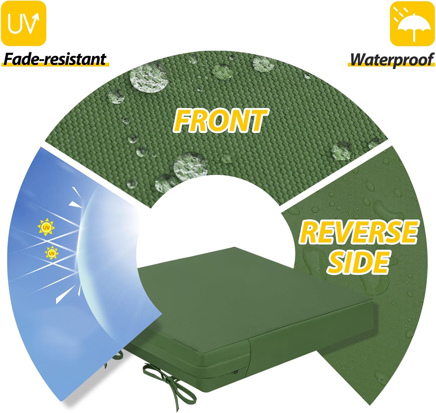 AAAAAcessories Outdoor Seat Cushions for Chairs, Waterproof, Fade-Resistant Patio Furniture Replacement Cushions, 20" x 20" x 3", Set of 2, Dark Moss Green