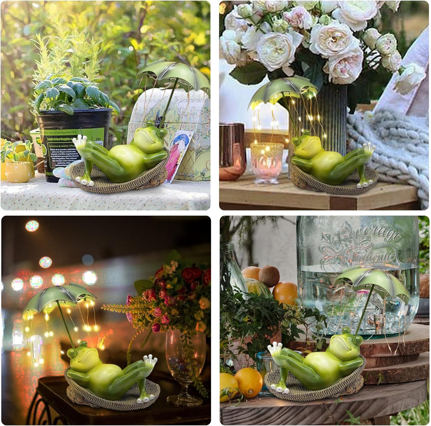 Solar Frog Garden Decor Outdoor Statue - Frogs Umbrella LED Waterproof Sculptures Lights, Cute Frog Pond/Yard Statues Outside Decoration, Home, Lawn, Patio, Resin Animal Ornament, Women/Gardening Gift