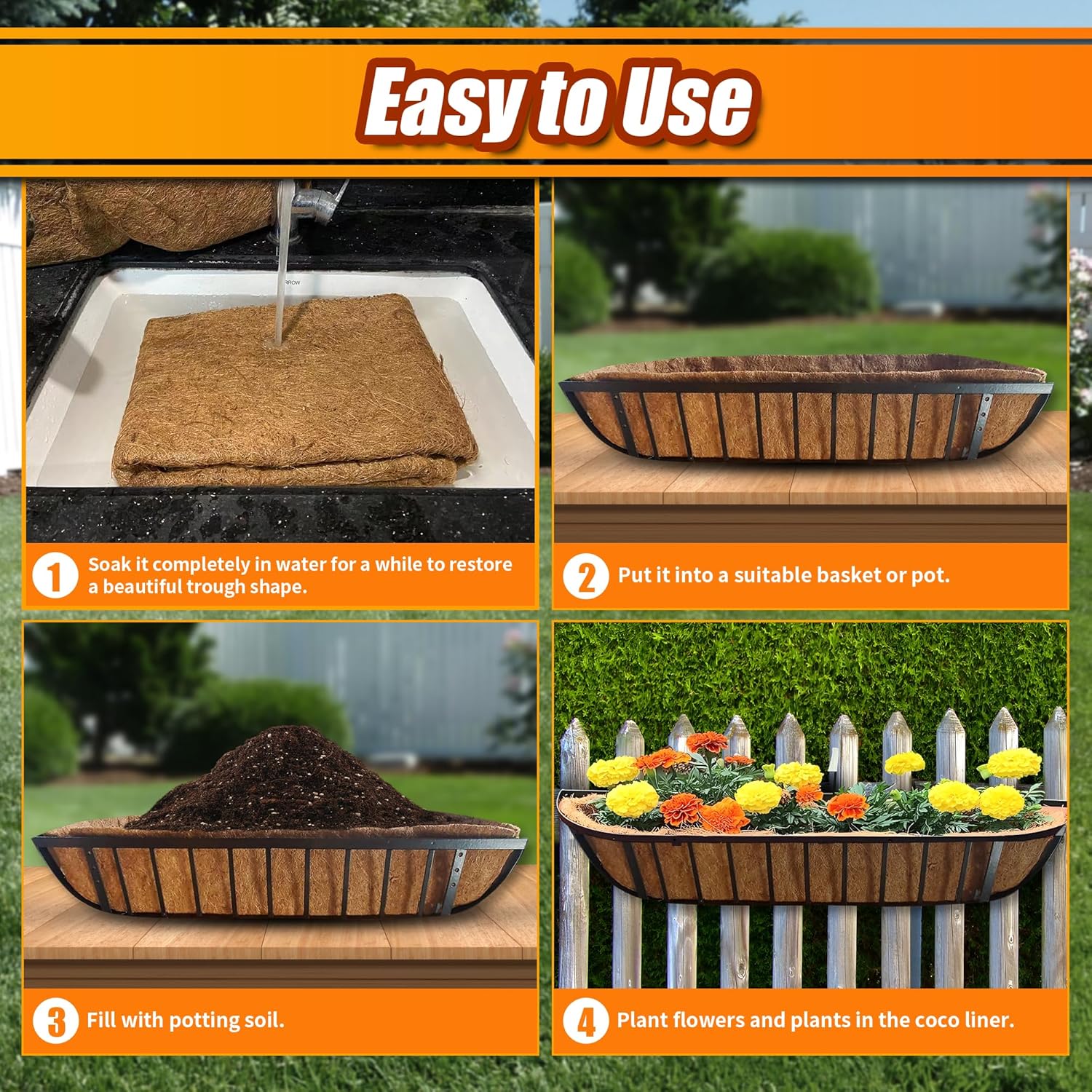 - 24 Inch Trough Coco Liners - Package Includes 4-pack window box liners, each is about 24" in length, 8.27" in width, 7.08" in depth โ a favored size among gardeners. Tailored to fit wire baskets under 24", ensuring a more appealing look for your flower pots or baskets. (Please check the size before purchase.)