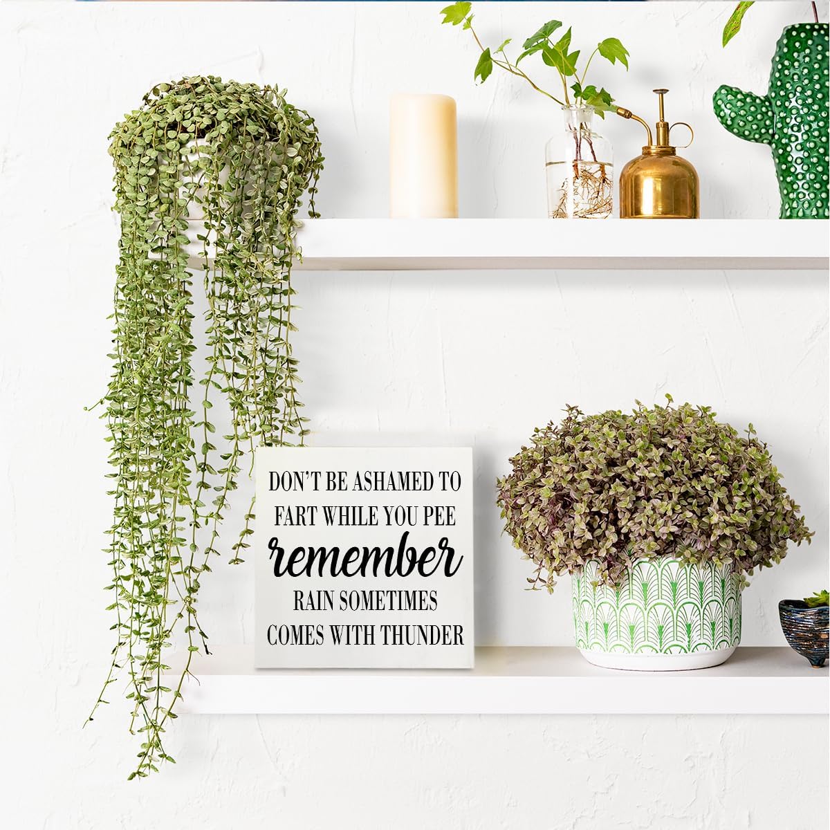 HTBIG Funny Bathroom Decor Desk Decor Wooden Box Sign Rustic White Wood White Plaque Box Sign for Home Farmhouse Bar Toilet Washroom Shelf Table Decoration Don't be Ashamed to Fart While Peeing Sign