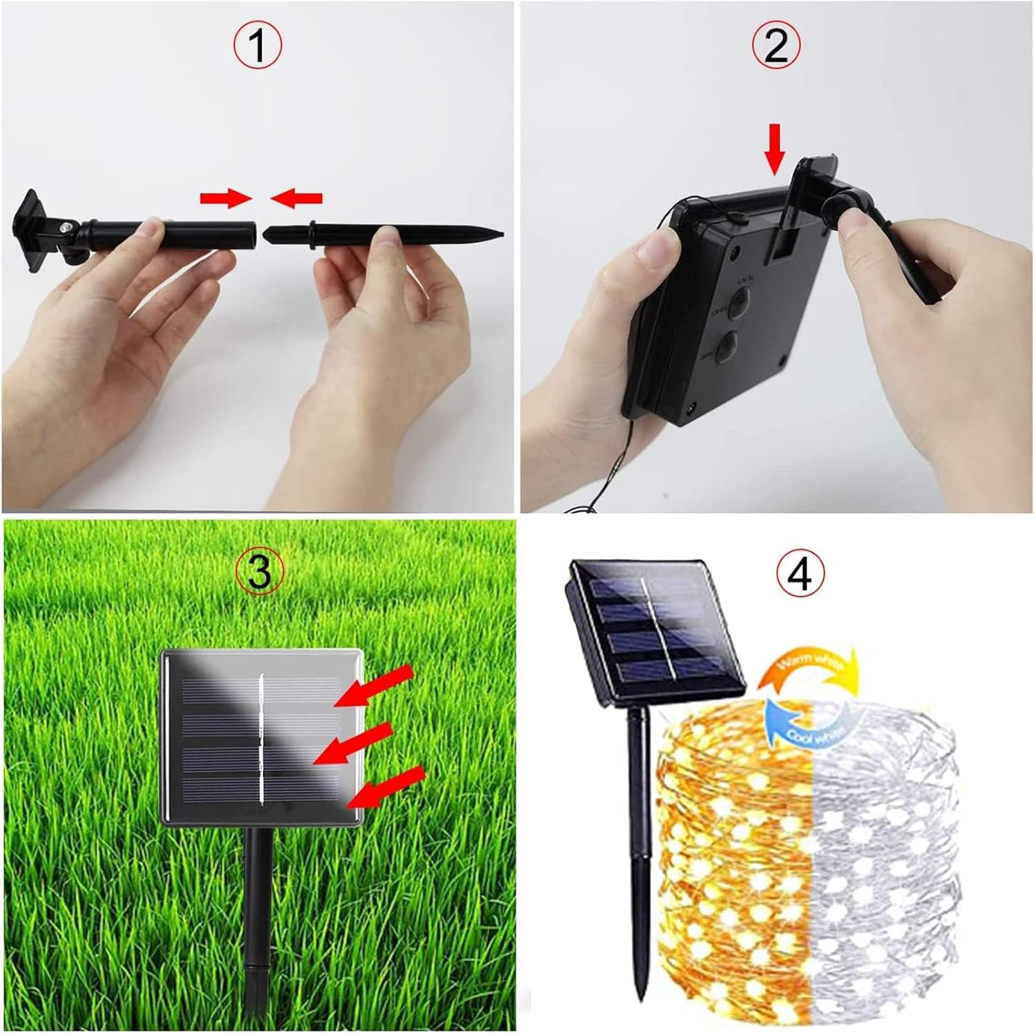 - Upgraded 2 Pack Super Bright Solar Christmas Lights: Cute shaped, powerful 1800mAh Capacity Battery, Super Bright Total 200 LED 80FT, Upgraded Larger LED Beads, IP65 Waterproof Performance. Durable Flexible Copper Wire, Quick Charging Technology, Color Temperature Switchable (Warm White / Cool White), Romantic Christmas Decorations. Solar string lights outdoor waterproof will be a great choice.