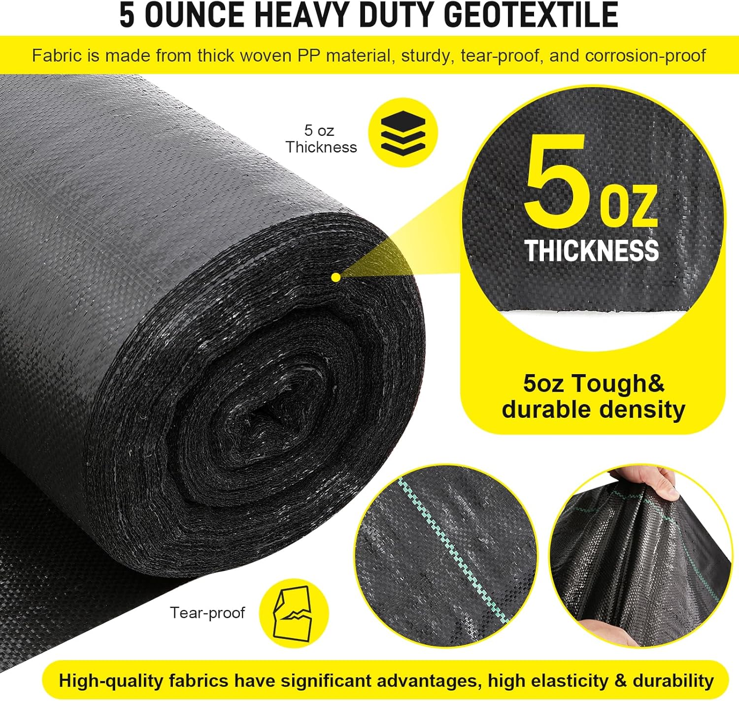 - 【Driveway Fabric】-This 5 oz heavy duty Landscape Fabric measures 13 ft wide and 115 ft long. The heavy duty Landscape Fabric is here to fully cover 1495 sq,High-quality fabrics have significant advantages, such as high elasticity and durability. The woven texture allows air, nutrients and water to pass through.