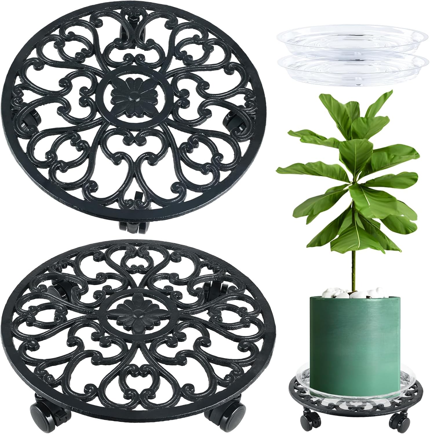 - Strong Load-Bearing: This heavy-duty indoor plant dolly is crafted from cast iron; Cast iron plant stands indoors can hold large and heavy flower pots or other items. 4 wheels provide better stability than 3 wheels.
