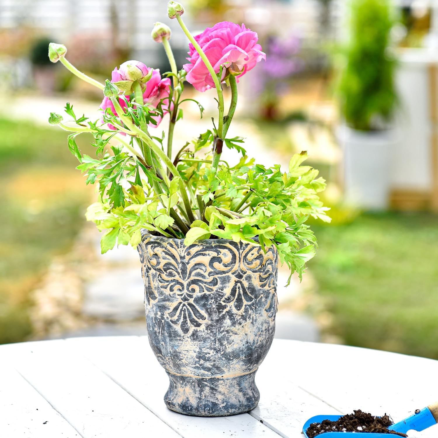 - Vintage Design: These decorative cement planters with intricate embossed design, the retro, natural finish goes well with mid-century or Bohemia decor, adding an enchanting touch to any space.