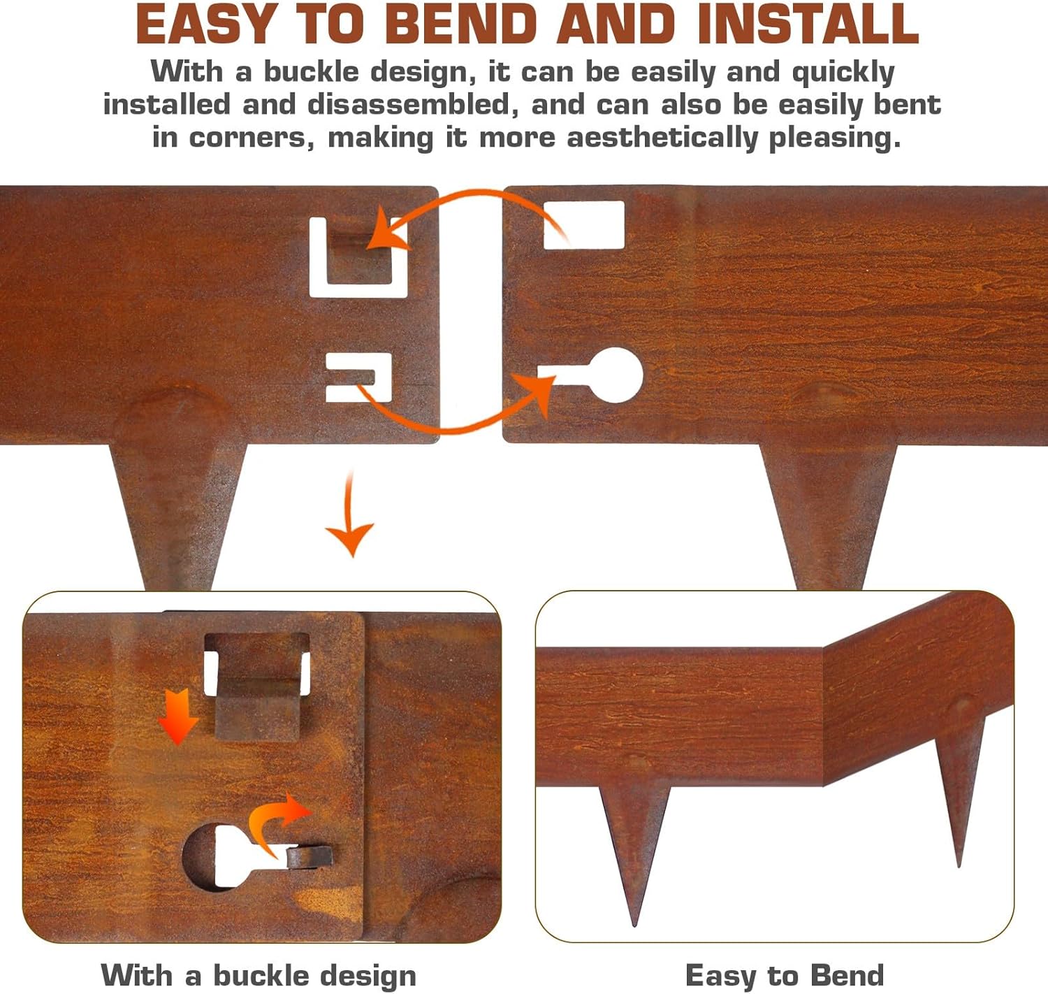 - HEAVY DUTY CORTEN STEEL MATERIAL - Our metal garden landscape edging is made of heavy-duty corten steel for durability. The unique large tooth design ensures stability and strength, providing lasting support for your outdoor space. Take care to wear gloves during use