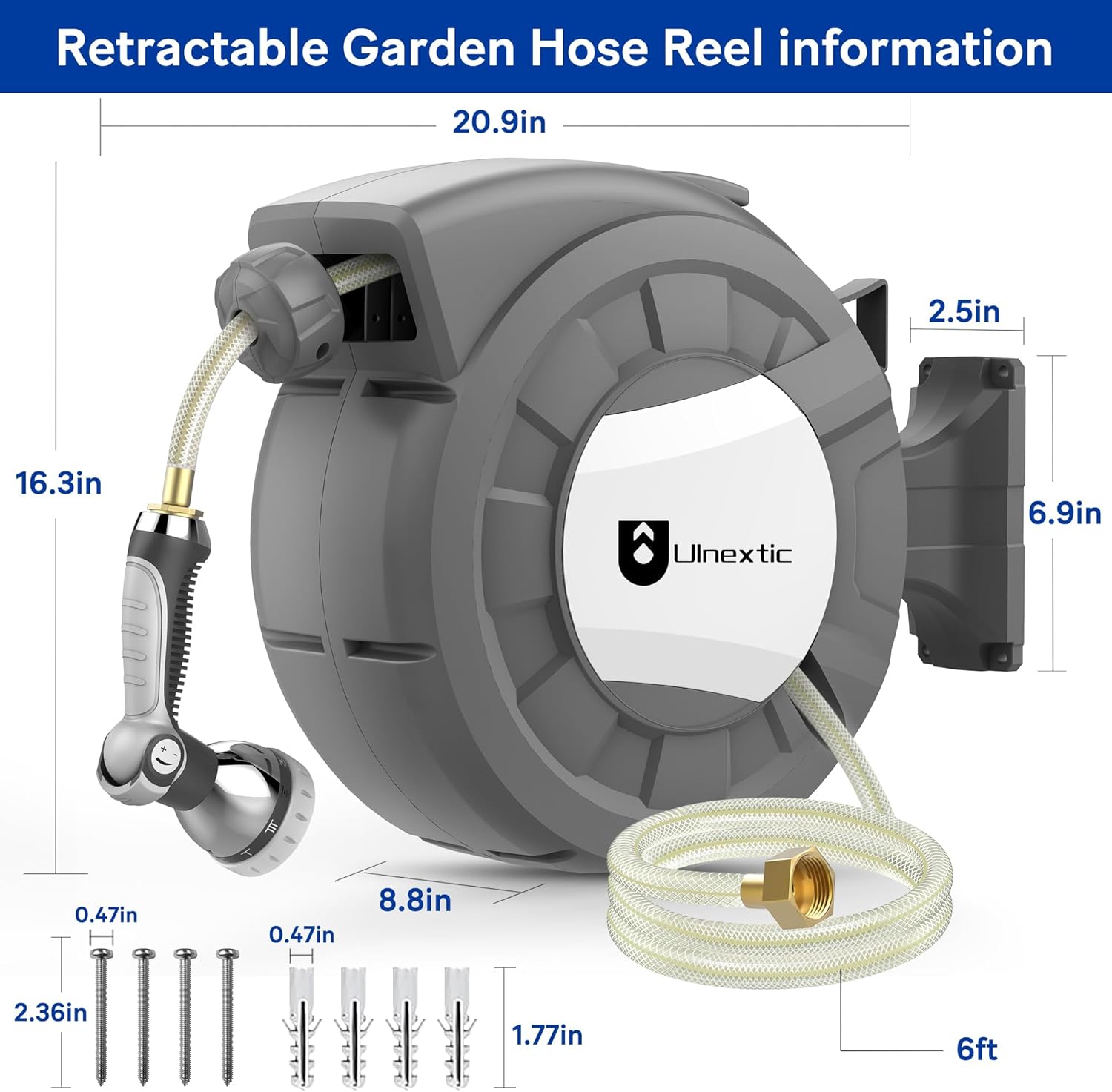 - Wall-Mounted 180° Rotation: The product includes a rotating bracket that can be fixed to solid walls or wooden stakes. The rotating bracket can rotate 180° and comes with a 50 ft hose, providing coverage for your entire garden
