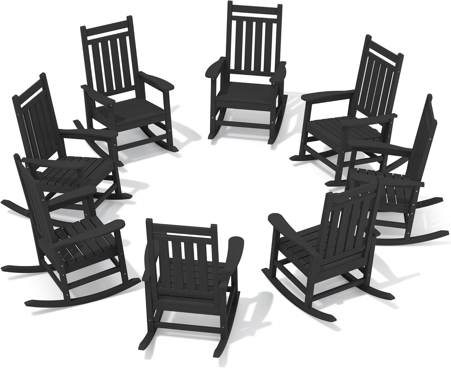 SERWALL HDPE Outdoor Rocking Chair Set of 8, Patio Rocking Chairs for Adults, All Weather Outdoor Rockers for Lawn, Black