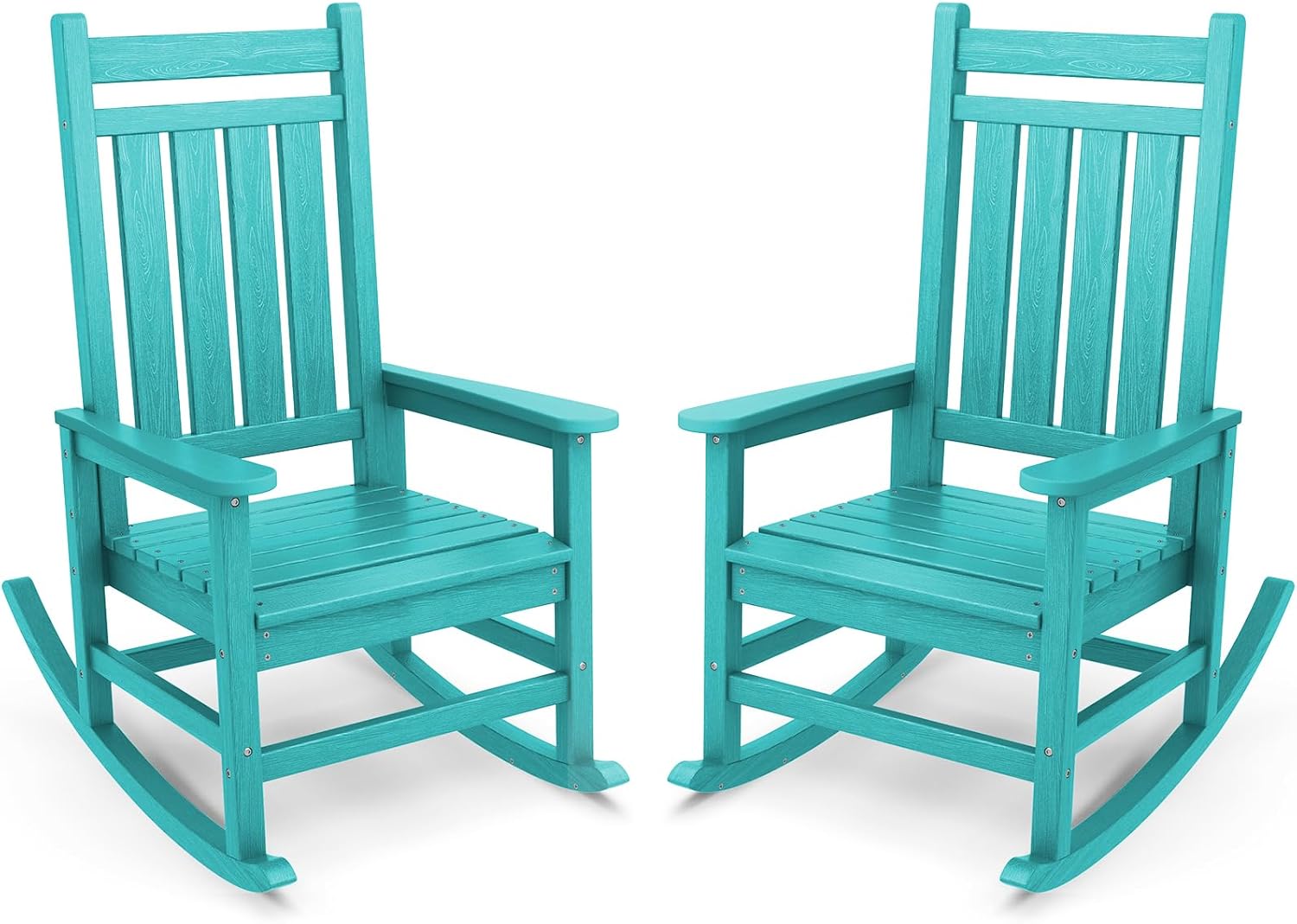 SERWALL Outdoor Rocking Chair Set of 2, HDPE Rocking Chairs for Adult, All Weather Porch Rockers for Lawn Garden, Aruba