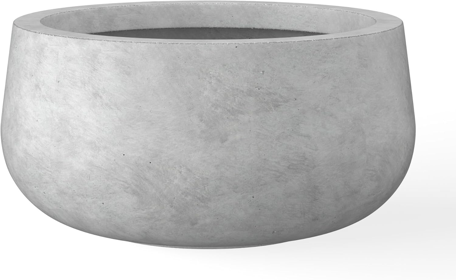 Kante 19.6" Dia Round Concrete Planter, Cement Plant Pots with Drainage Hole and Rubber Plug for Outdoor Indoor Garden Home, Modern Curvaceous Design, Natural Concrete