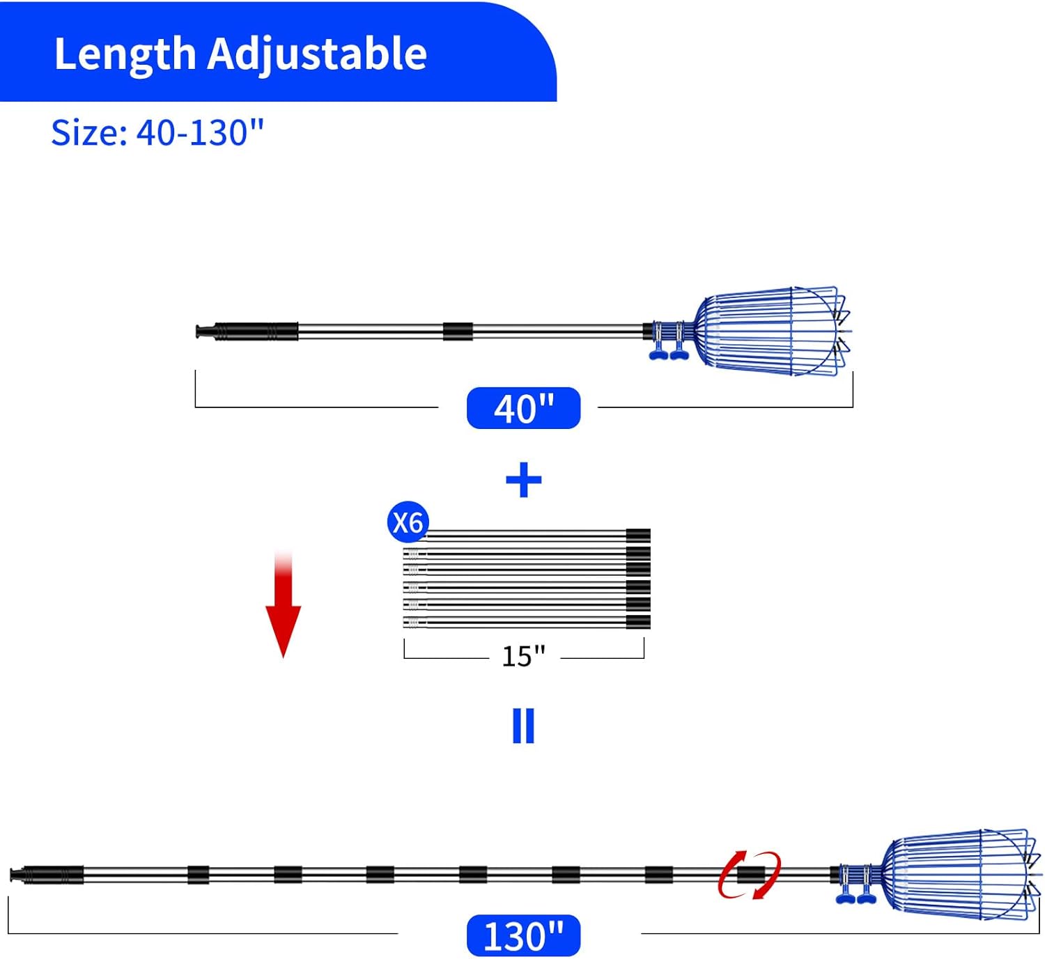- Adjustable Length: Forget about hazardous ladders. Our picker can be easily adjusted to your desired length, providing a labor-saving solution for all your fruit picking needs.