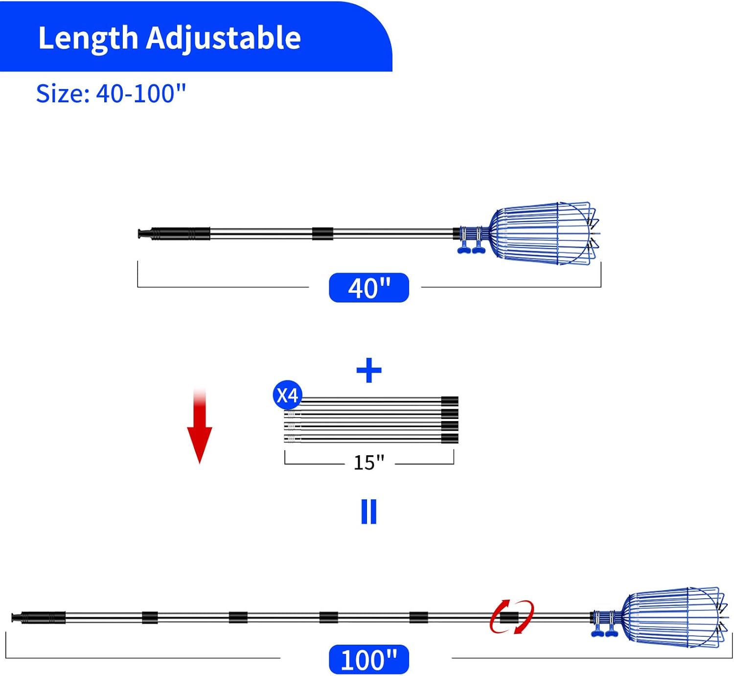 - Adjustable Length: Forget about hazardous ladders. Our picker can be easily adjusted to your desired length, providing a labor-saving solution for all your fruit picking needs.