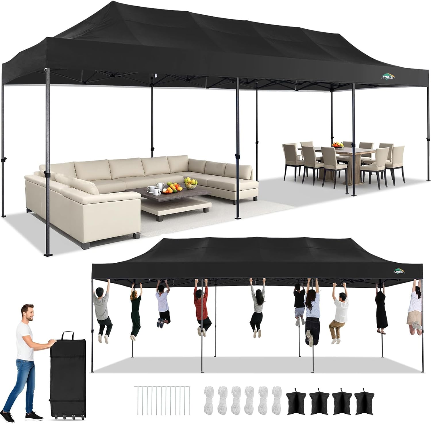 COBIZI 10x30 Pop up Canopy Heavy Duty Without Sidewalls, Easy Set-up Commercial Outdoor Party, 100% Waterproof Wedding Canopy Gazebo, 3 Height Adjustable with Wheeled Bag, Black