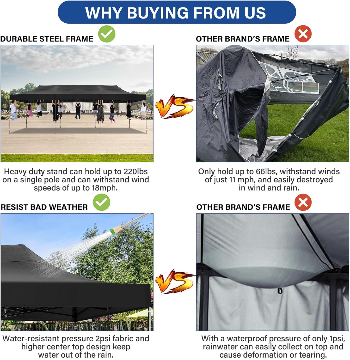- 【Best Quality Fabric】10x30 Heavy duty canopy tent is made of 500D Oxford cloth with two layers of PU coating, UPF 50+, blocks 99% of UV rays. Heat-sealed seam technology is used, 100% waterproof, 1500mm waterproof pressure, waterproof effect is better than other general tents.