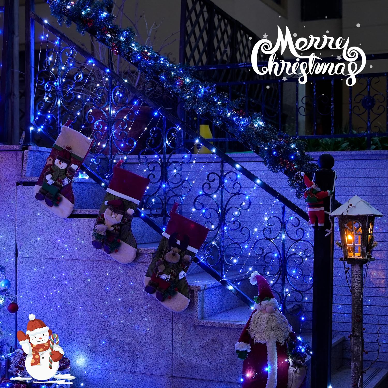 - 【8 Impressive Lighting Modes】our blue and white Christmas lights with 8 different modes (steady/flash/smooth/Steady-on, etc), can create vibrant Christmas atmospheres. They can be Christmas gifts for your family. Lighten your gift and brighten up your family and friendship. The solar Christmas fairy lights were just icing on the cake.