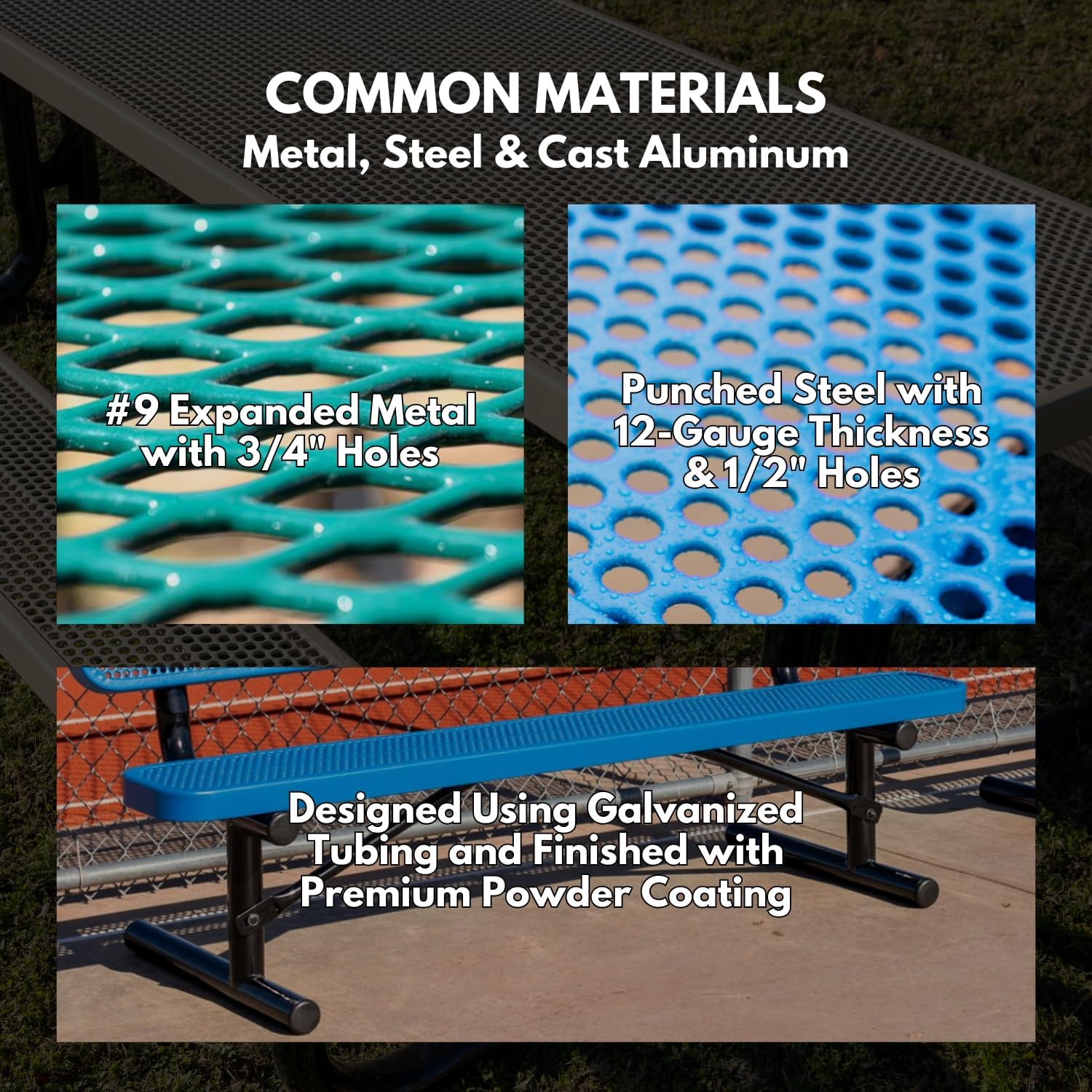 - CLASSIC OUTDOOR PARK BENCH: 6-Foot & 8-Foot Park Benches come with multiple mounting options depending on your functionality preferences—Portable, Inground & Surface Mount. Whether you prefer a bench with back or without back, our style options have you covered in every color.