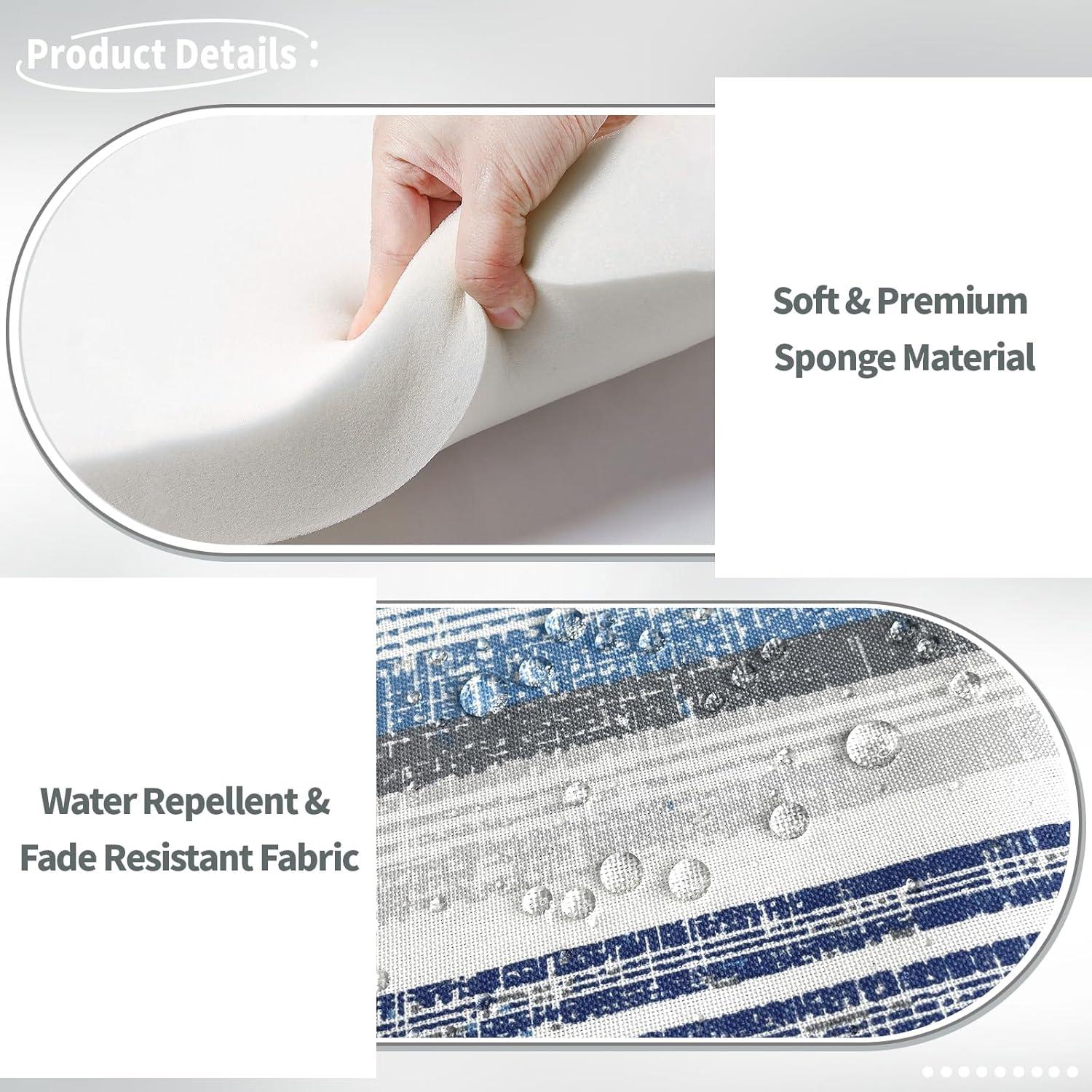 Indoor/Outdoor Chair Cushions 16x17 Inch, Patio Chair Cushions with Ties, All Weather Seat Cushions for Patio Furniture Home Garden Chair Use, Set of 2, Stripe Layered Blue