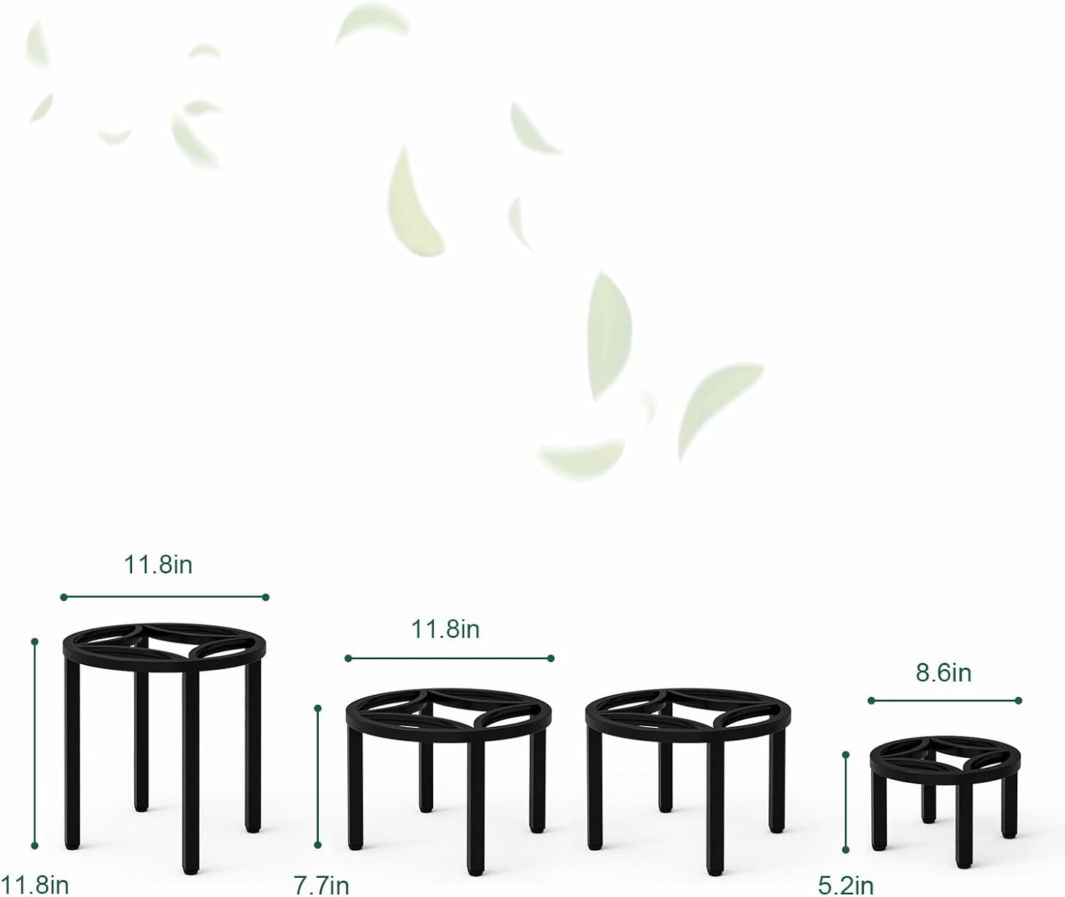 Zhongma Set of 4 Metal Plant Stand for Heavy Potted Plant for Home Indoor and Outdoor, 220 LBS Capacity & Heavy Duty Construction, Sturdy Plant Riser without Installation Required