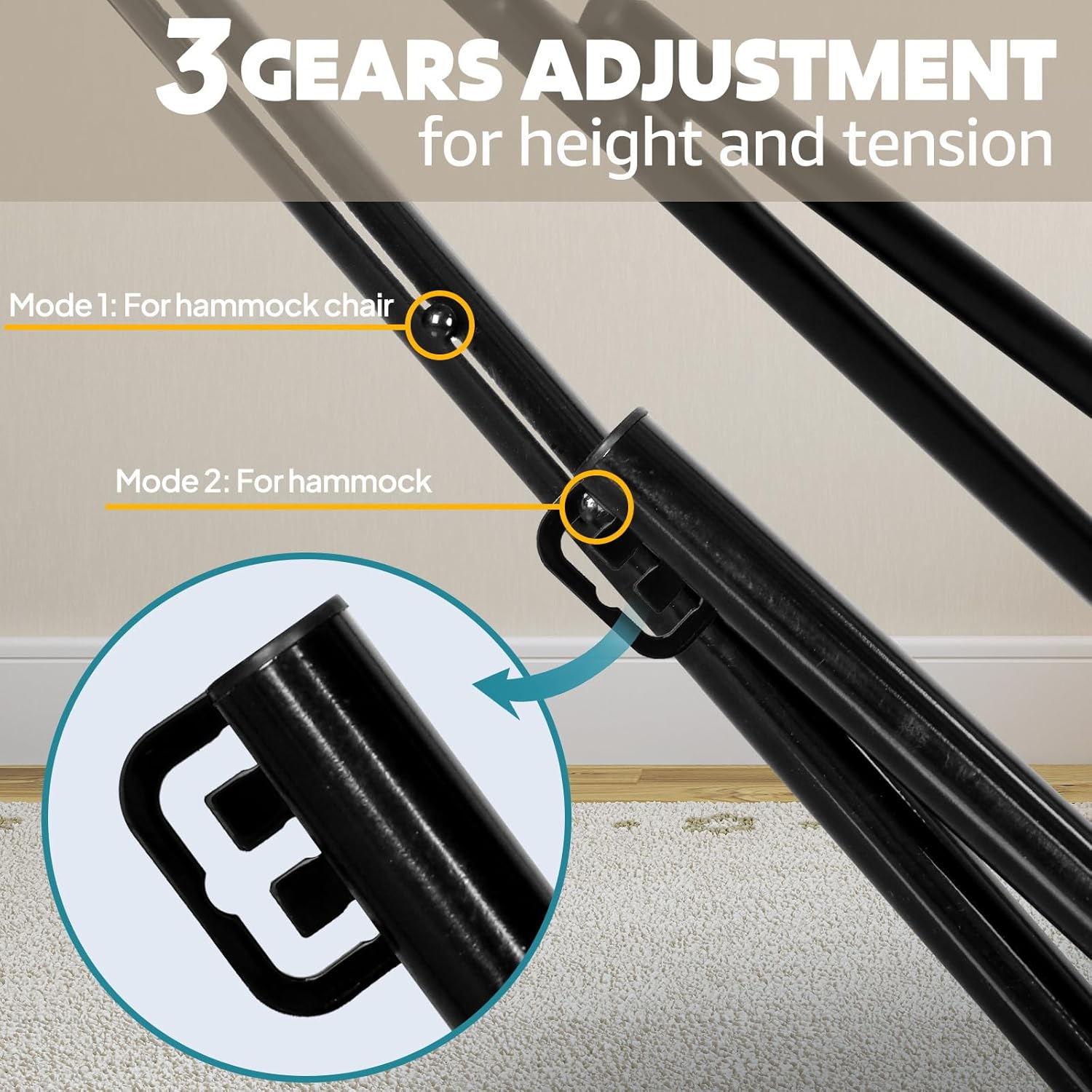 - Free Transformation and Sturdy: 2 in 1 adjutable hammock stand, it can be twisted easily from hammock stand to hammock chair stand.The heavy duty hammock stand is made from rust-resistant powder-coated steel The hammock stand is powder-coated which makes the steel rust-resistant and protected against wind and rain. There are also plastic feet on the bottom to prevent scratches on your deck.