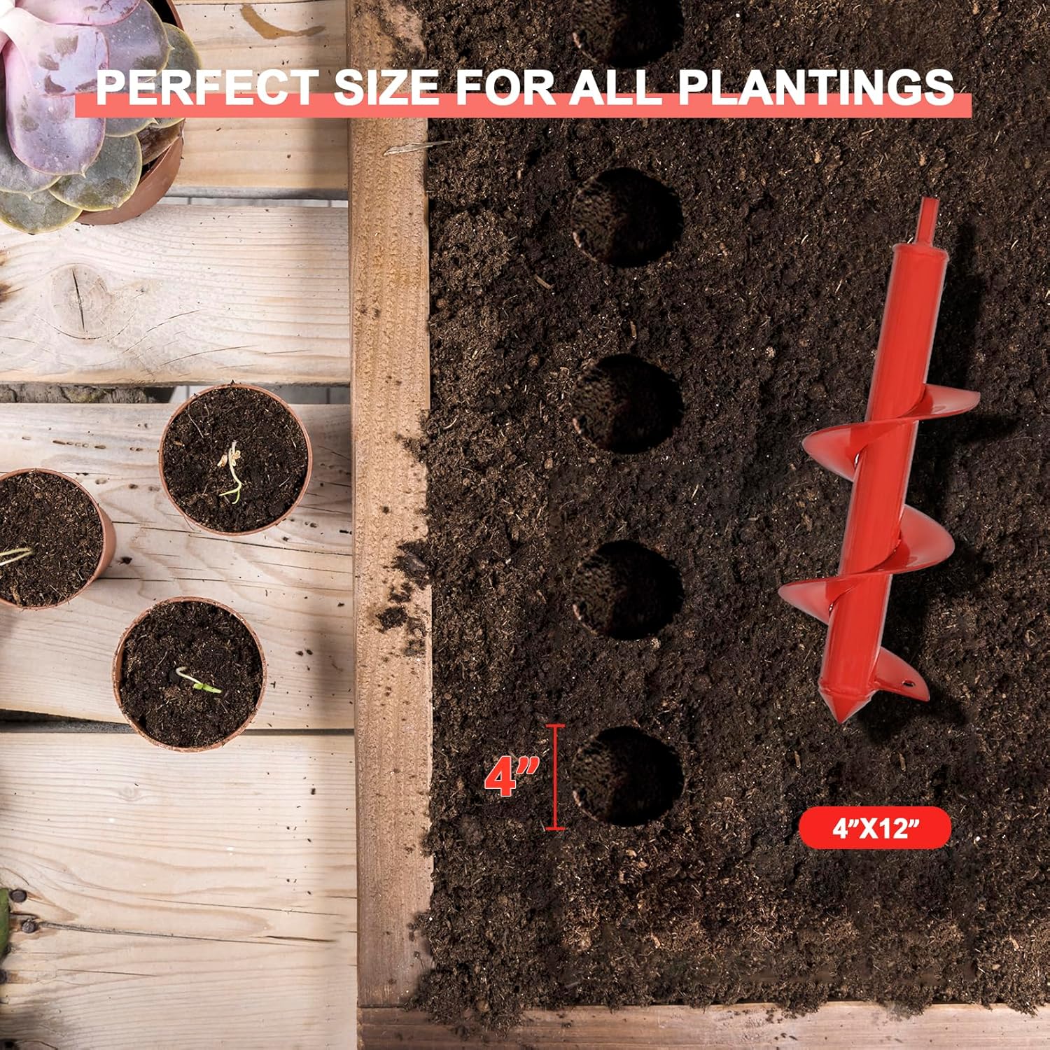 - A Sweet Little Time Saver: This garden auger made it possible for you to drill precisely 100 holes in the ground in less than ten minutes, and they made it so much easier than using a shovel or other tool. You can save more pointless manual digging time and do more meaningful things!
