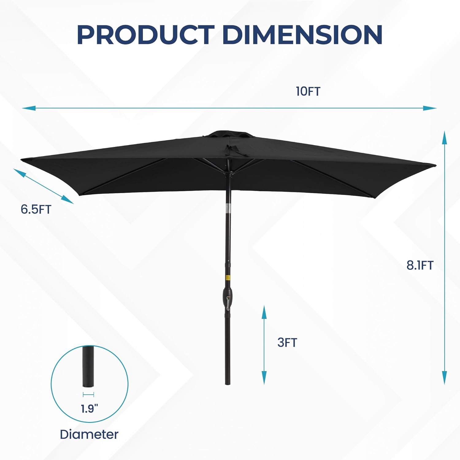 SUNVIVI OUTDOOR Patio Umbrella, 6.5' x 10' Rectangular Patio Umbrella, Metal Pole Square Outdoor Umbrella with Crank and Push Button Tilt, 6 Steel Ribs, Polyester Canopy