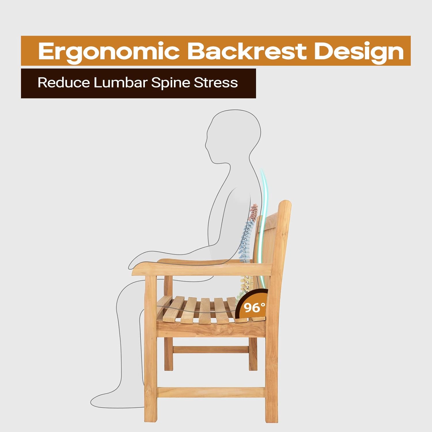 A-Grade Natural Teak Bench - Outdoor Garden Bench with Curved Backrest & Arch Armrest, Patio Bench - All-Weather 100% Solid Teak Wood 2-Person Park Bench for Yard, Lawn