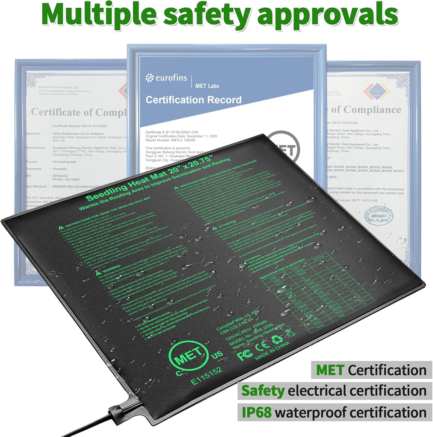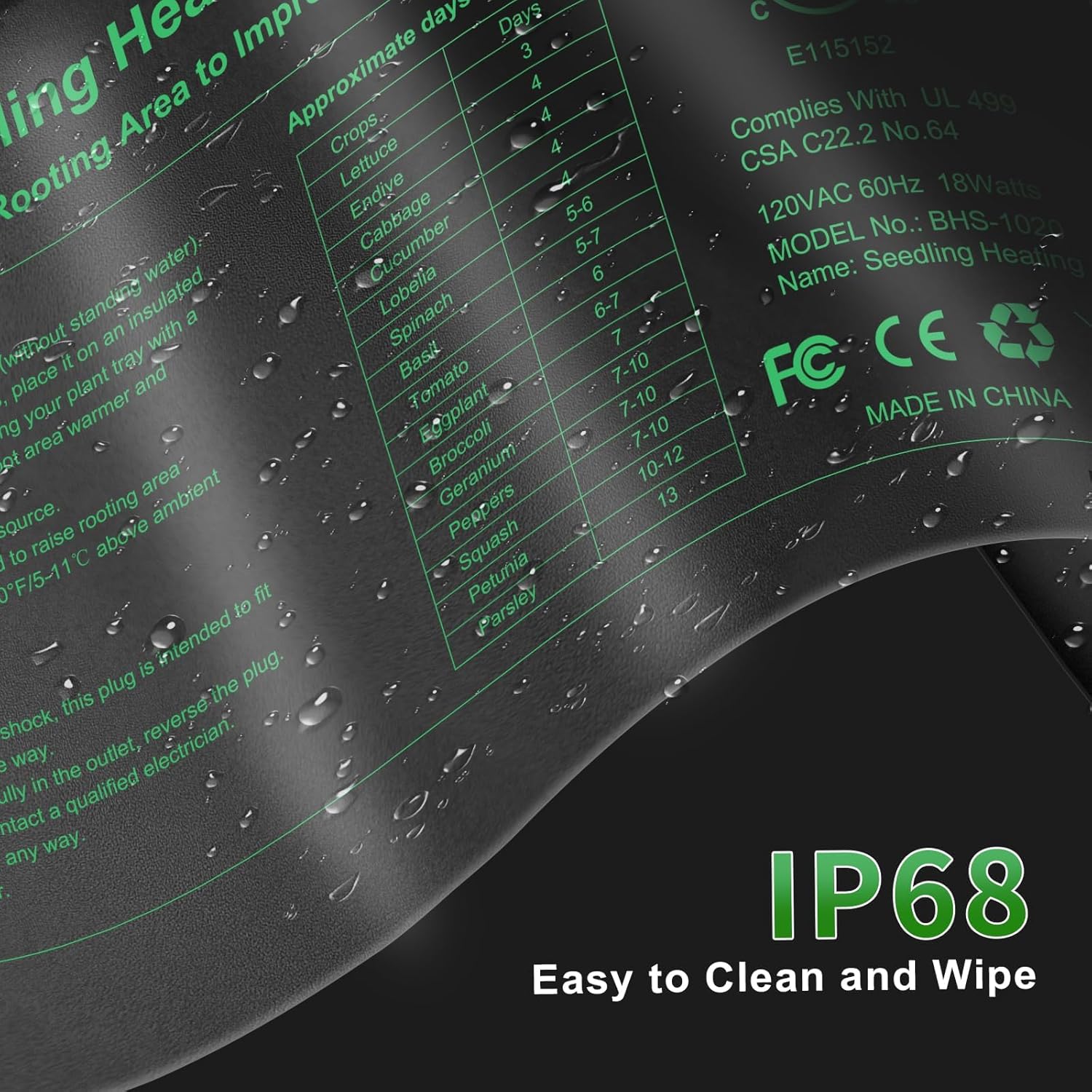 - ✿【Safety Assured】The heating mat for plants made of heavy duty PVC material that is durable and tear resistant; IMET/cMET certified; IP67 Waterproof approved;