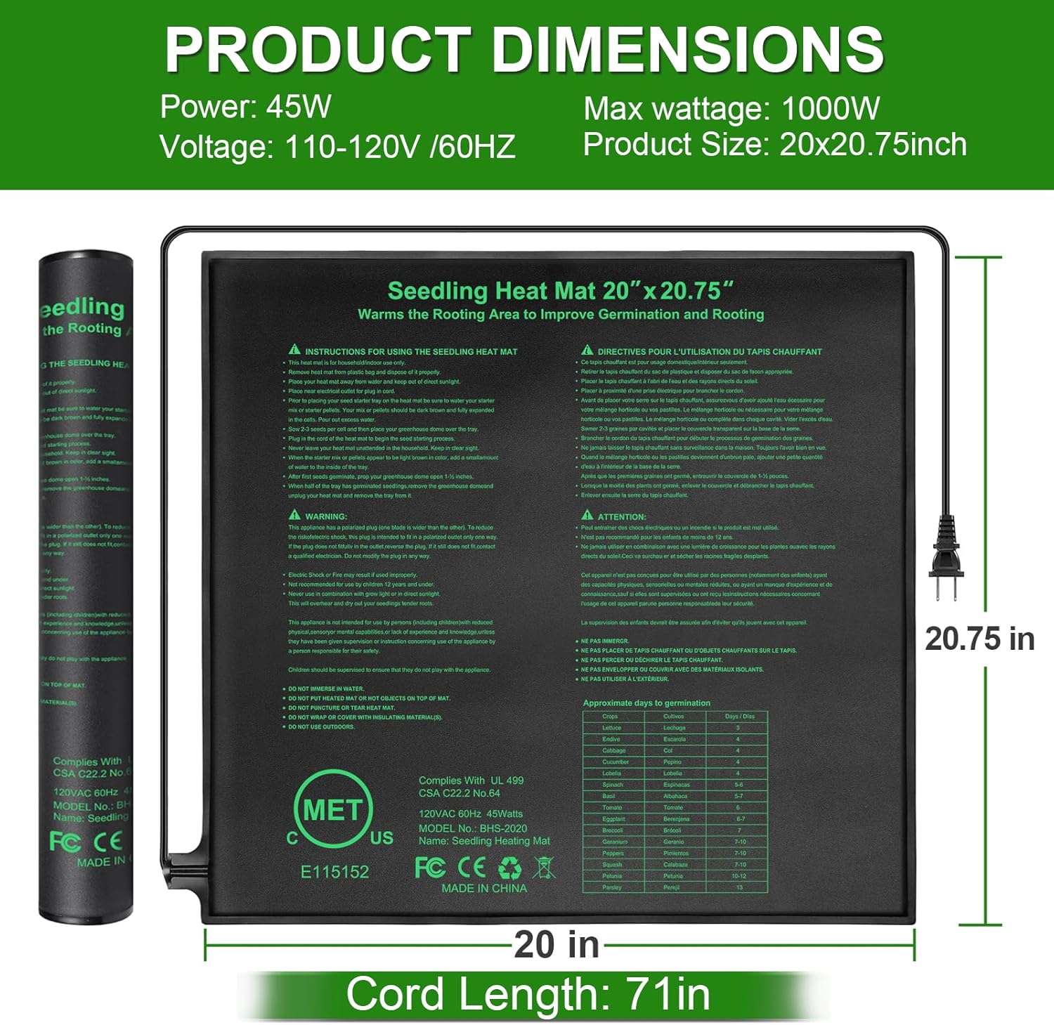 Bestio Waterproof Seedling Heat Mat, 20×20.75 in Heat Mats for Seed Starting, MET Certified Seed Mat, Suitable for Indoor Gardening, Germination