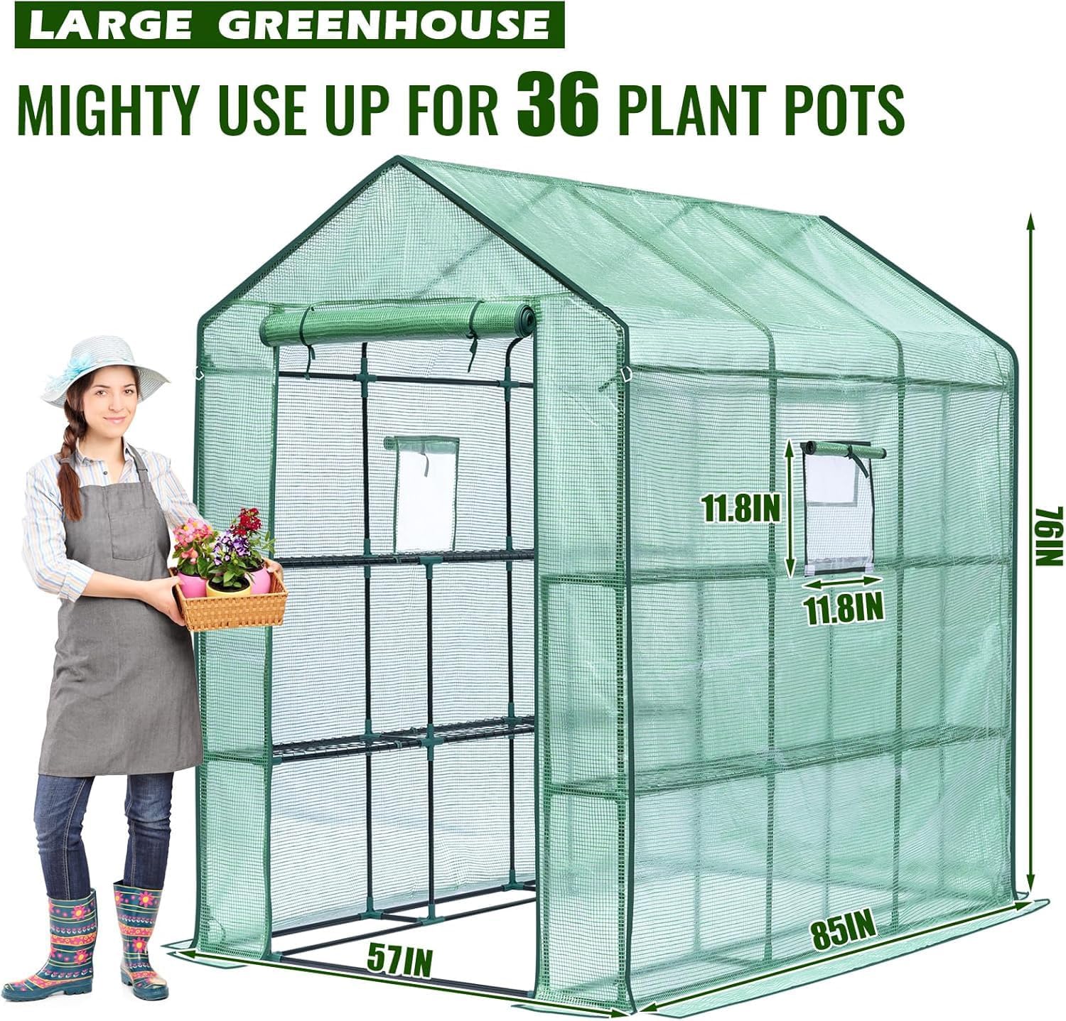 - Excellent Greenhouse for Plants Growth: No longer worry about winter cold, rainstorms, rodents, or insects. Greengro green house provide an enclosed space for plants to thrive, featuring a high-quality frame, thick polyethylene cover, sturdy zippered door, and screened windows. This greenhouses regulates external airflow, effectively controlling temperature and moisture levels, creating an excellent growing environment for potted plants and seeds in all seasons