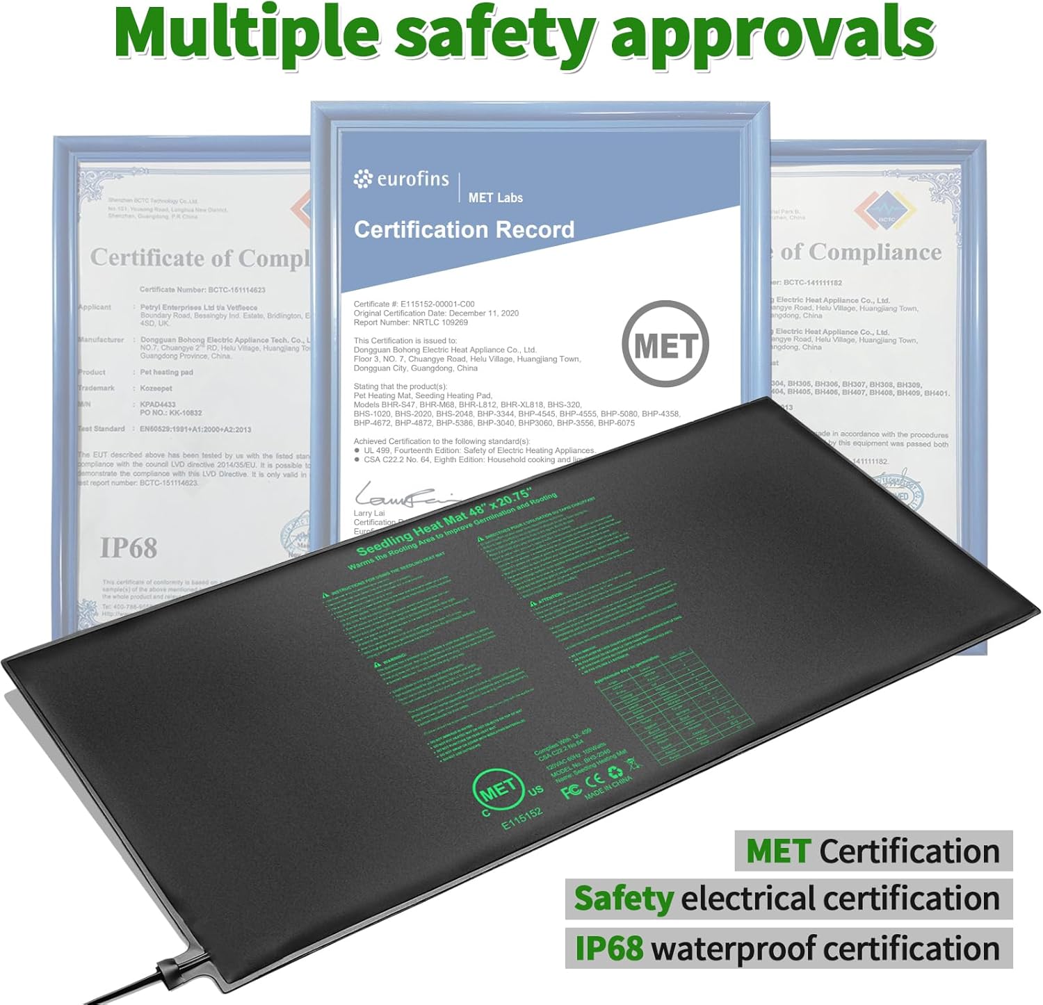 - ✿【Safety Assured】The heating mat for plants made of heavy duty PVC material that is durable and tear resistant; IMET/cMET certified; IP67 Waterproof approved;