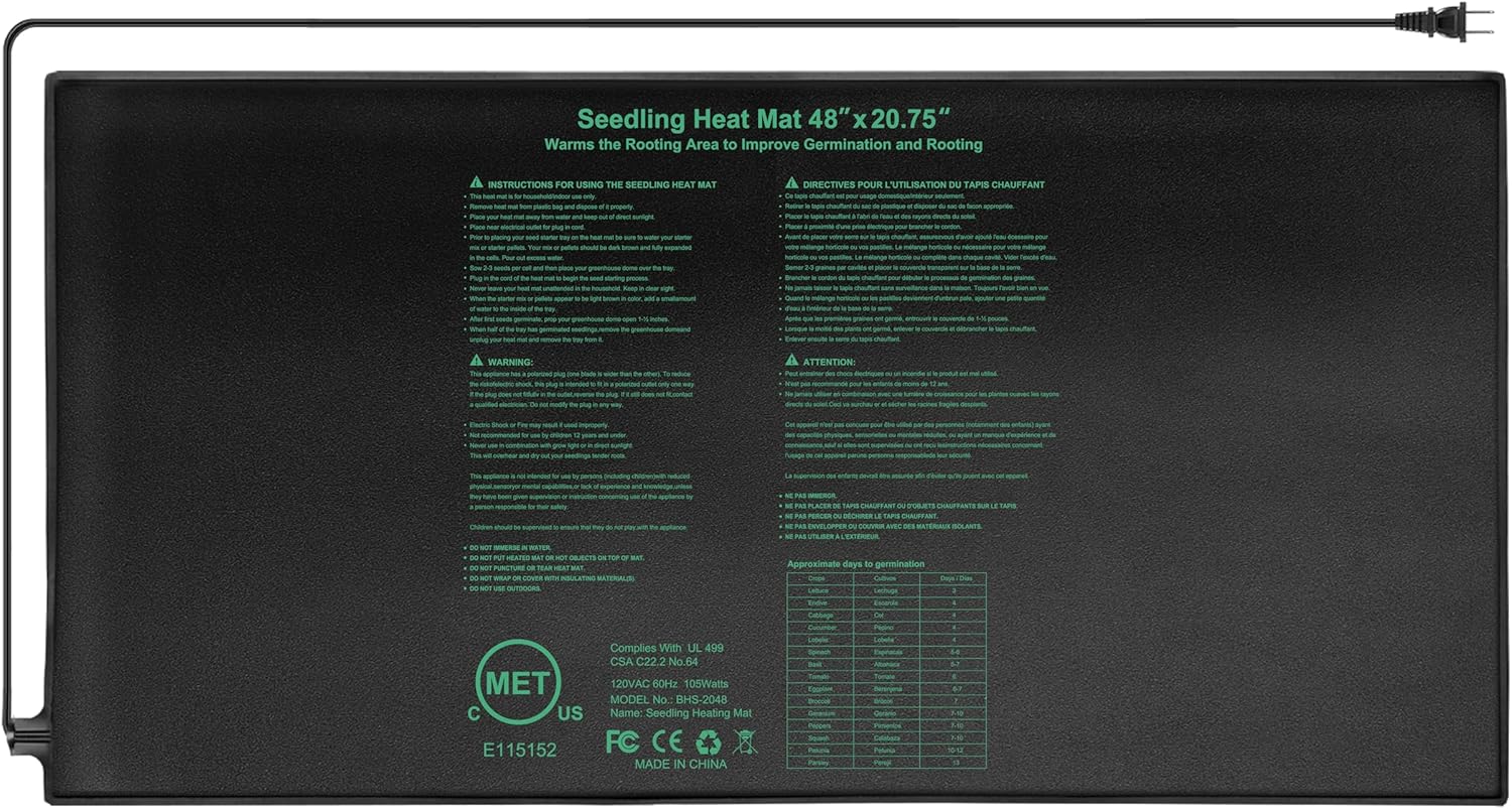 - ✿【Spec.】 Bestio seed heating mat, 110V-120V 60Hz 105W, 48X20.75". perfect for seeding, germination, home-brewing, and pet enclosures terrariums, such as those used in reptile, rodent and arachnid.