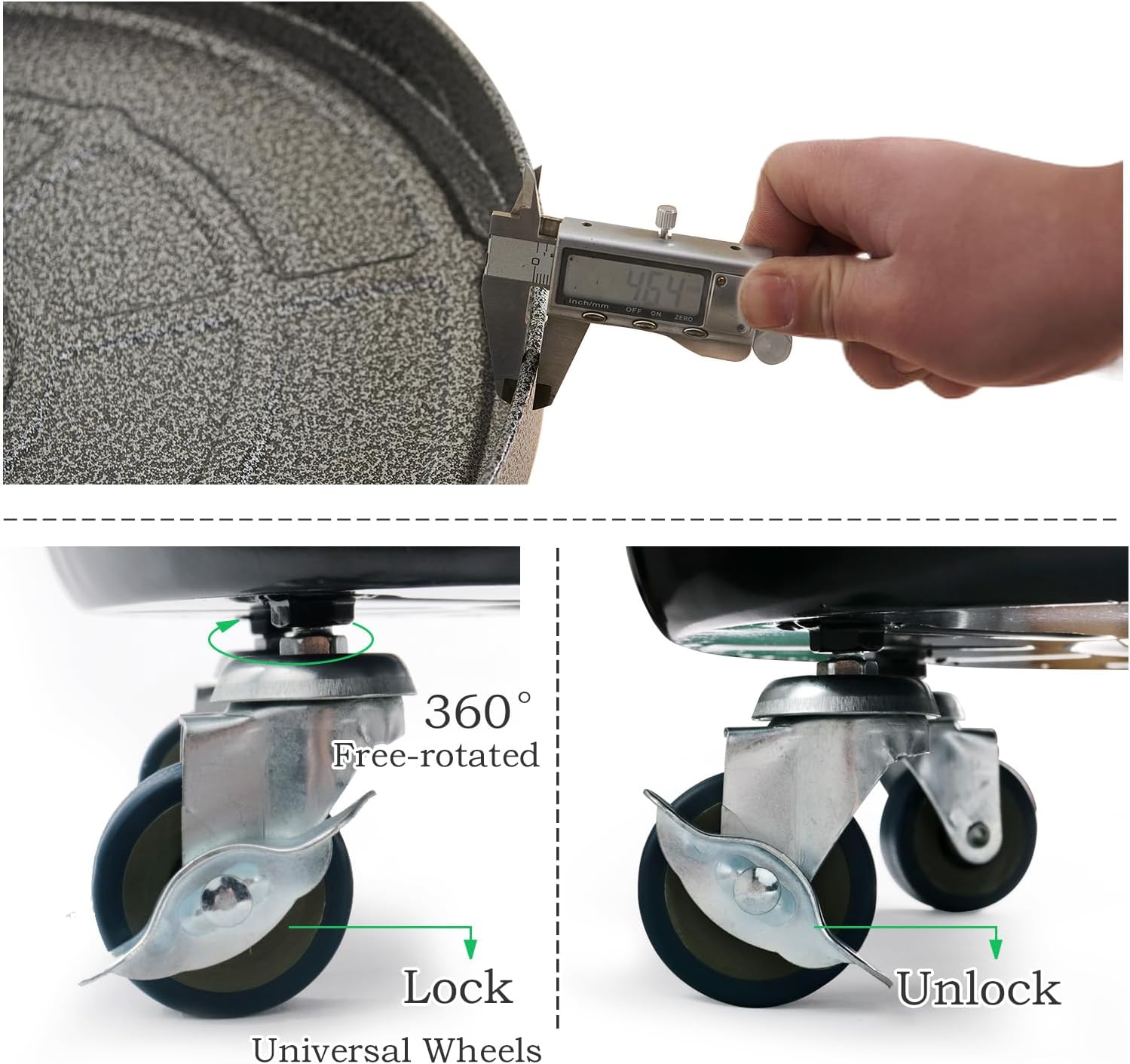 - [Metal tray] The surface of the rolling plant caddy is frosted to increase friction with the bottom of the planter, ensuring that the planter will not topple over during movement. The internal height of the saucer tray is 1inch deep enough, so it can practically catch and hold the overflow