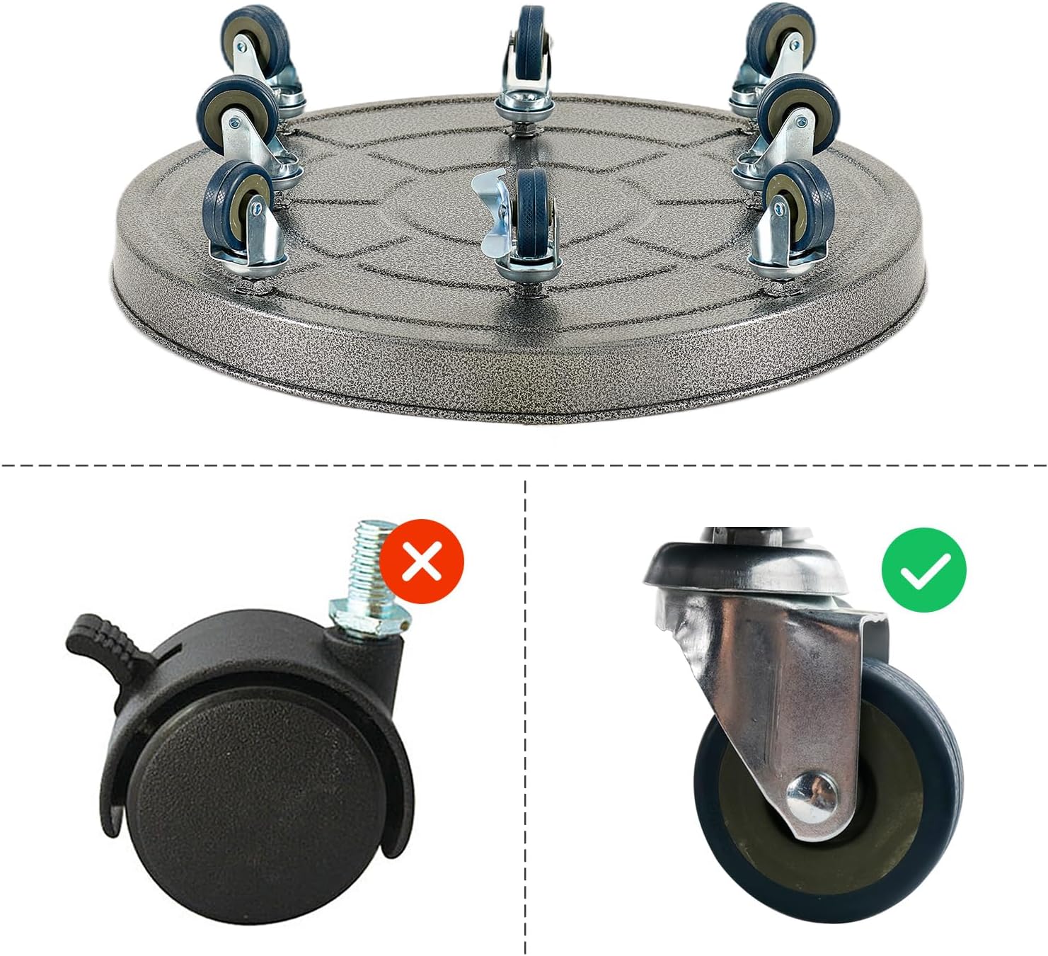 - [Metal tray] The surface of the rolling plant caddy is frosted to increase friction with the bottom of the planter, ensuring that the planter will not topple over during movement. The internal height of the saucer tray is 1inch deep enough, so it can practically catch and hold the overflow