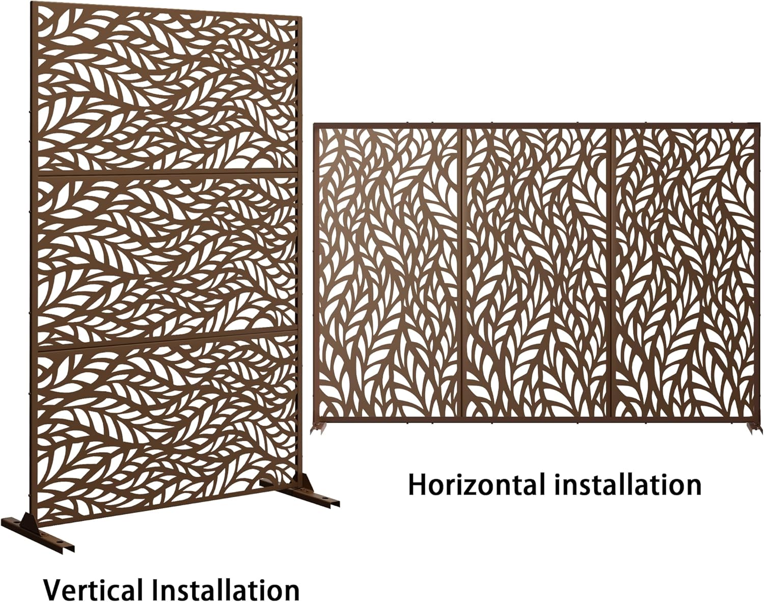 Metal Privacy Screen Outdoor 72" H×47" W,Freestanding Decorative Privacy Screen for Balcony Yard&Garden,Privacy Fence-Brown&Leaf