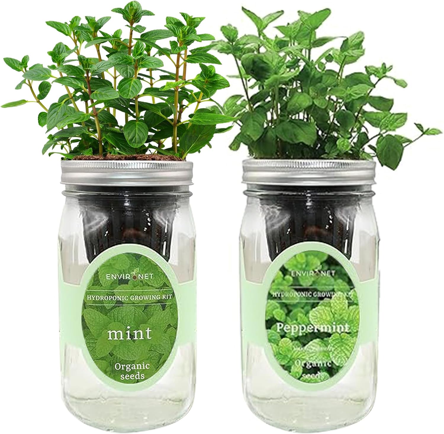 2-Pack Hydroponic Mason Jar Herb Garden Kit, Indoor Herb Garden Self-Watering Starter Kit (Mint,Peppermint)