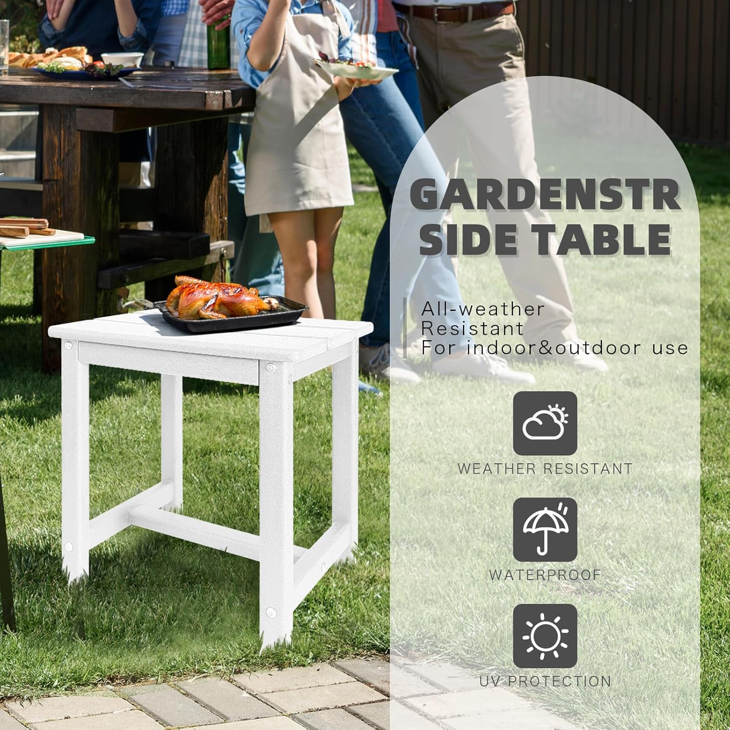 Adirondack Square Side Table,one-Tier Outdoor end Table, Patio Side Table for Pool,Porch,Backyard,Relaxing Companion (White)