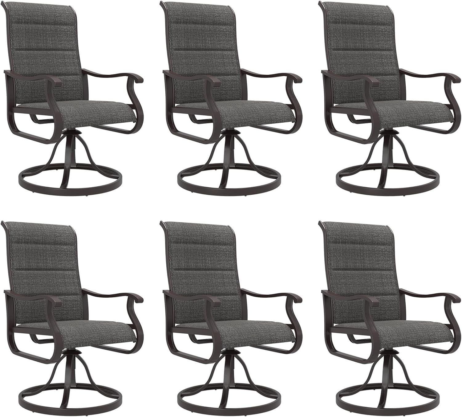 Amopatio Padded Patio Swivel Chairs Set of 6, Outdoor Dining Chairs with Ultra Soft Textilene High Back Seat & Metal Rocker Frame, for Backyard Deck Lawn Garden, Dark Grey