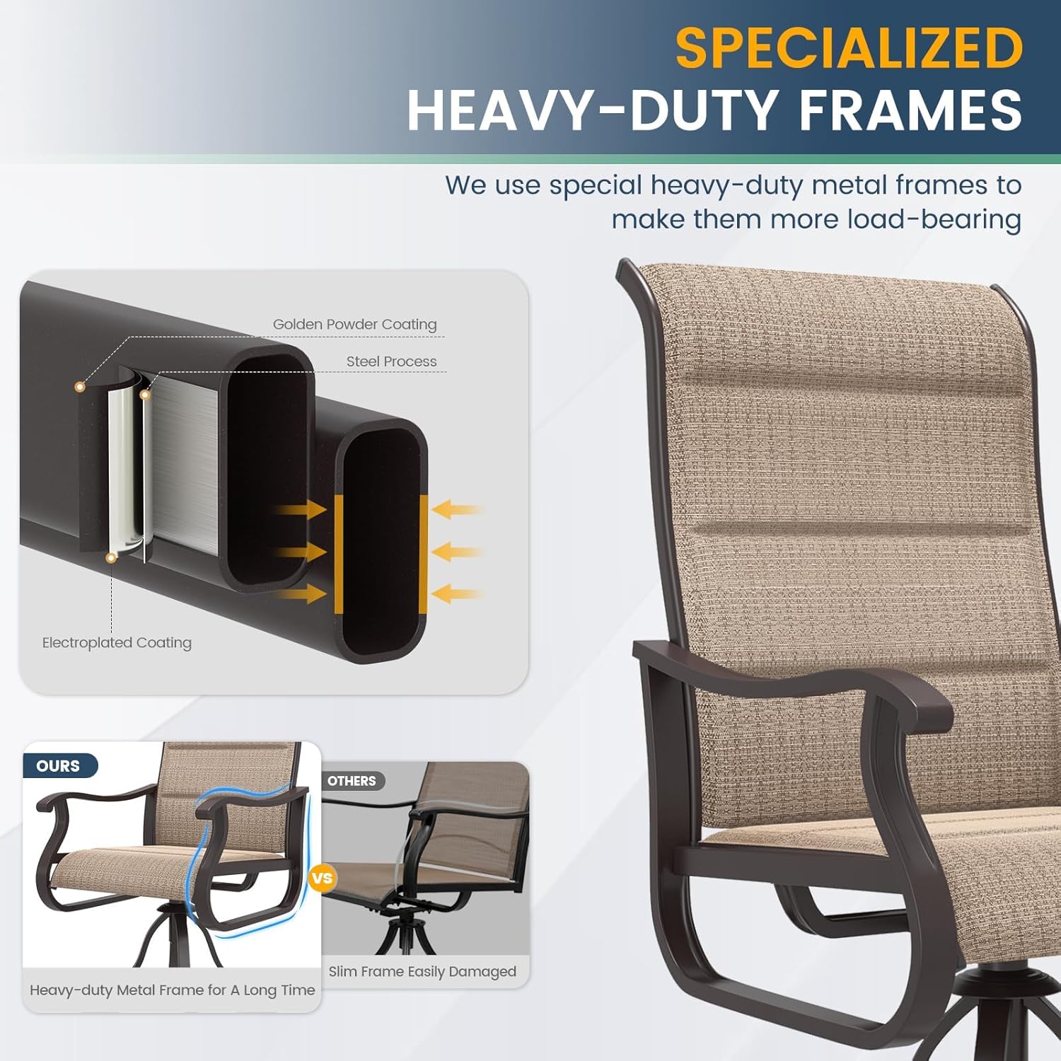 Amopatio Padded Patio Swivel Chairs Set of 4, Outdoor Dining Chairs with Ultra Soft Textilene High Back Seat & Metal Rocker Frame, for Backyard Deck Lawn Garden, Brown