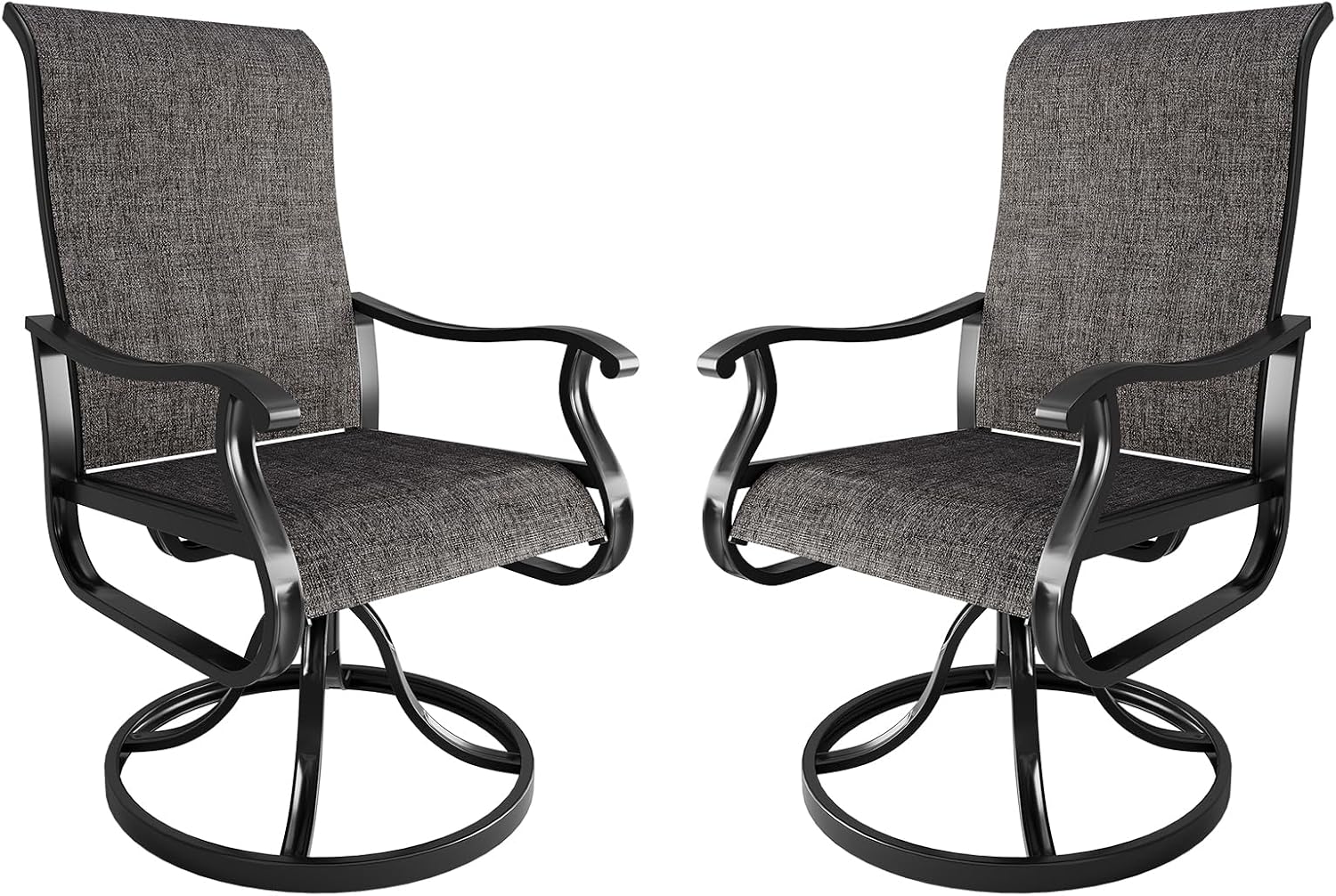 Amopatio Patio Swivel Chairs Set of 2, Outdoor Swivel Rocker Dining Chairs with All Weather Textilene High Back & Metal Frame, for Backyard Deck Lawn Garden, Dark Grey