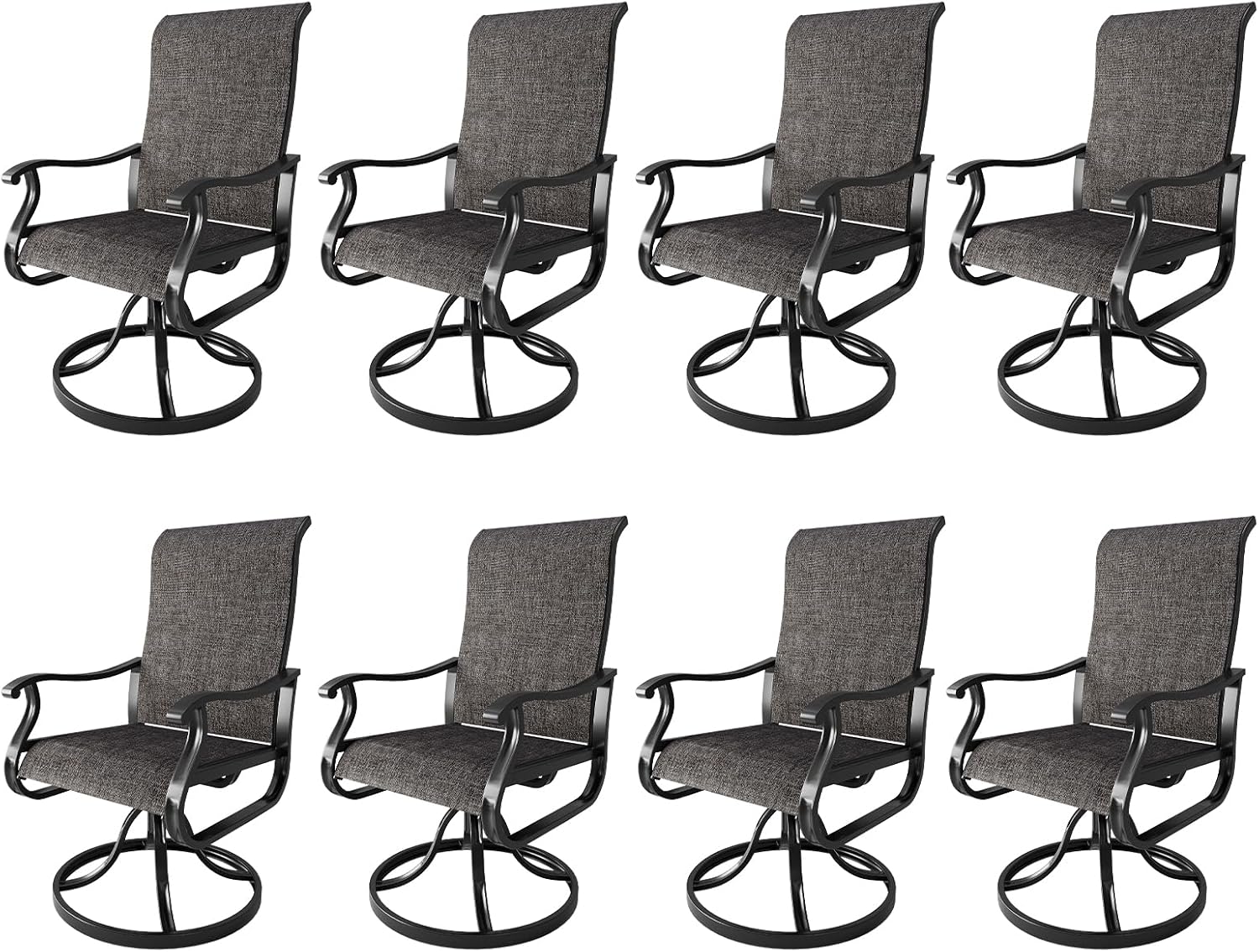 Amopatio Patio Swivel Chairs Set of 8, Outdoor Swivel Rocker Dining Chairs with All Weather Textilene High Back & Metal Frame, for Backyard Deck Lawn Garden, Dark Grey