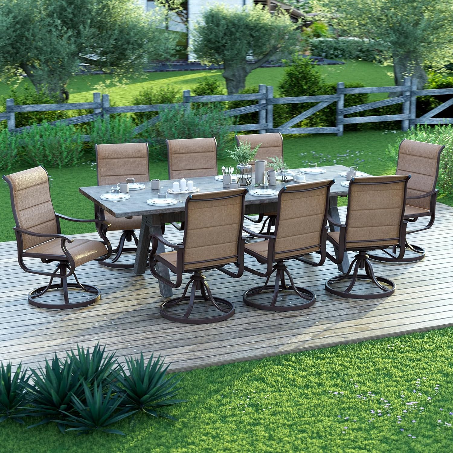 Amopatio Padded Patio Swivel Chairs Set of 8, Outdoor Dining Chairs with Ultra Soft Textilene High Back Seat & Metal Rocker Frame, for Backyard Deck Lawn Garden, Brown