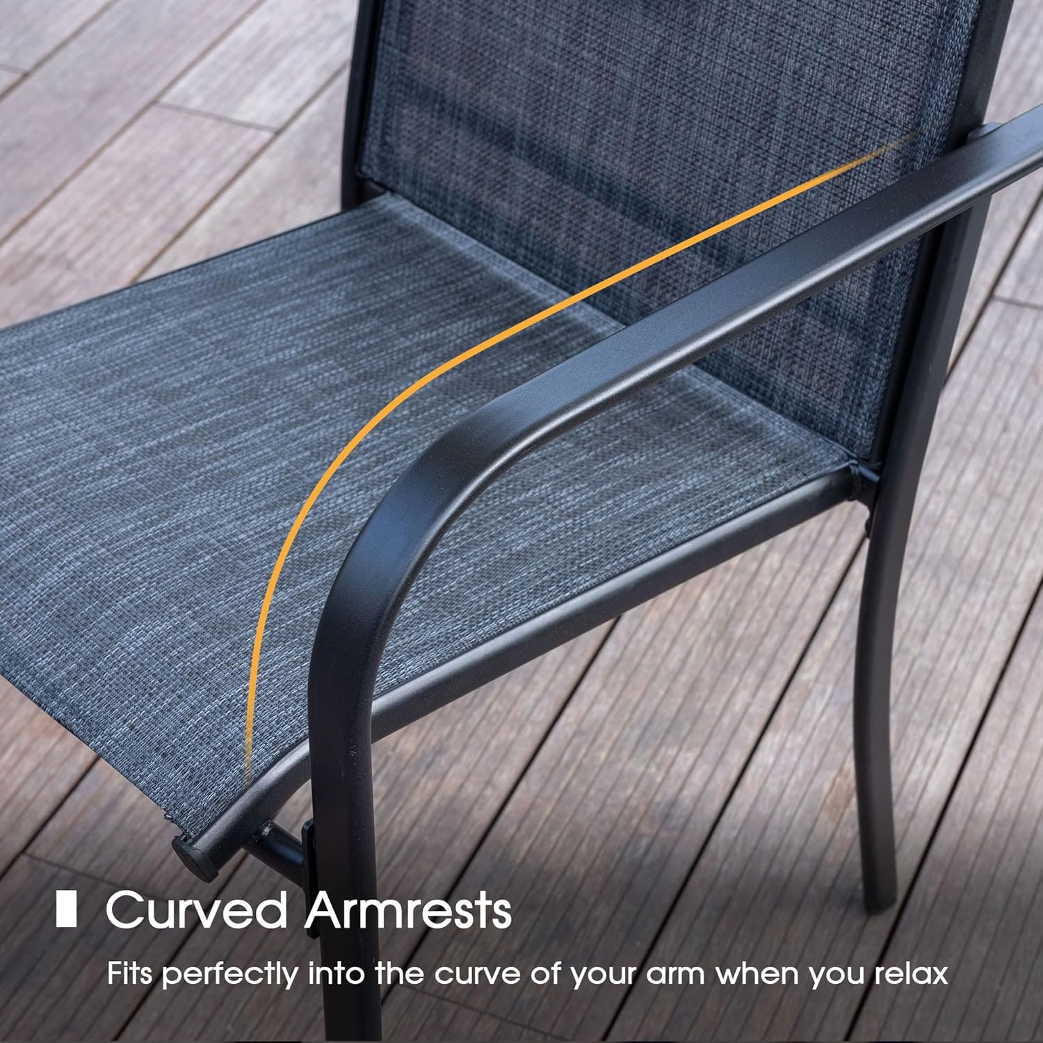 - 【Patio Stackable Chairs】 Slight lawn chairs are stackable for space-saving and portability. Breathable patio chairs feature good airflow, UV, fade, and stain-resistant, comfortable to sit in the courtyard or garden on a hot summer day
