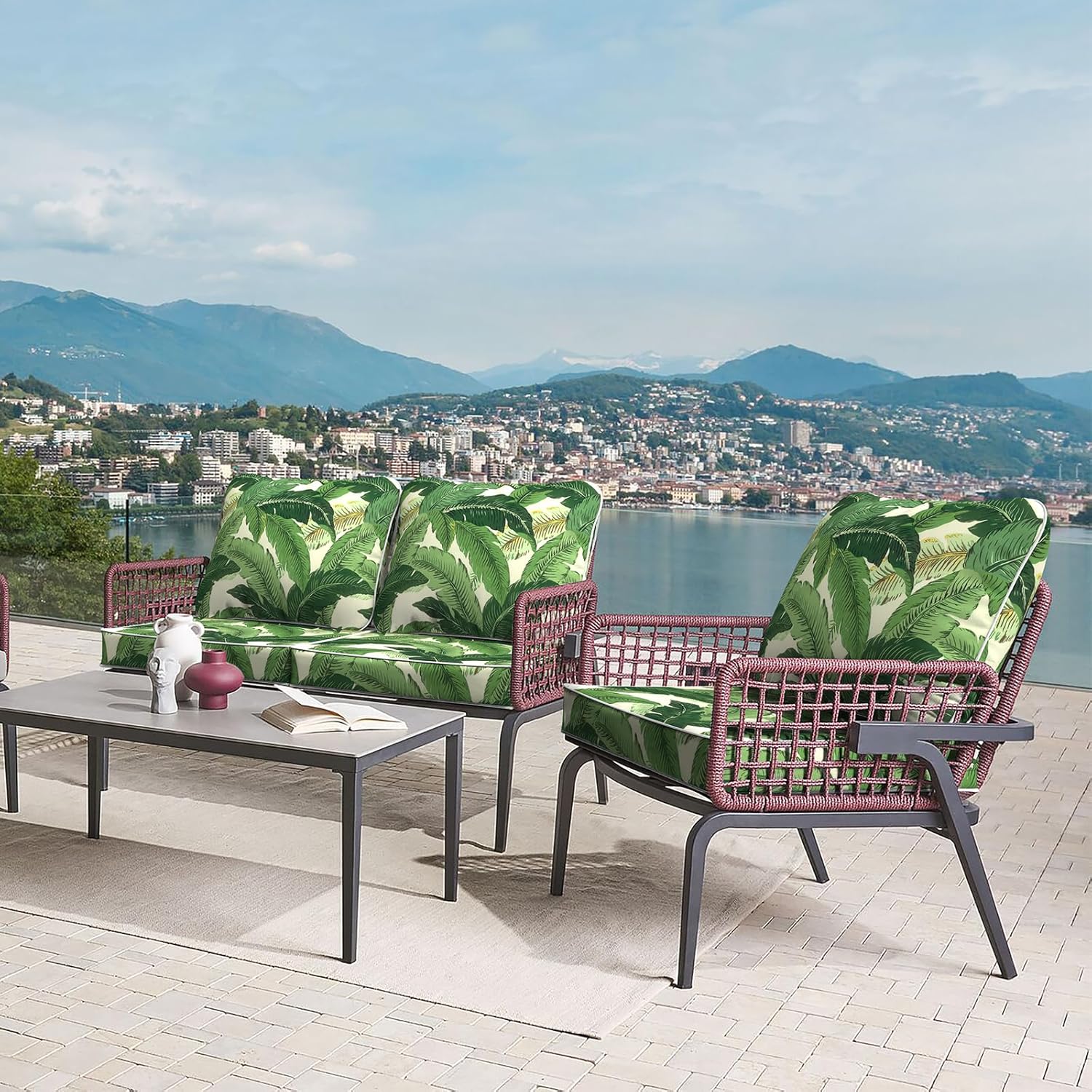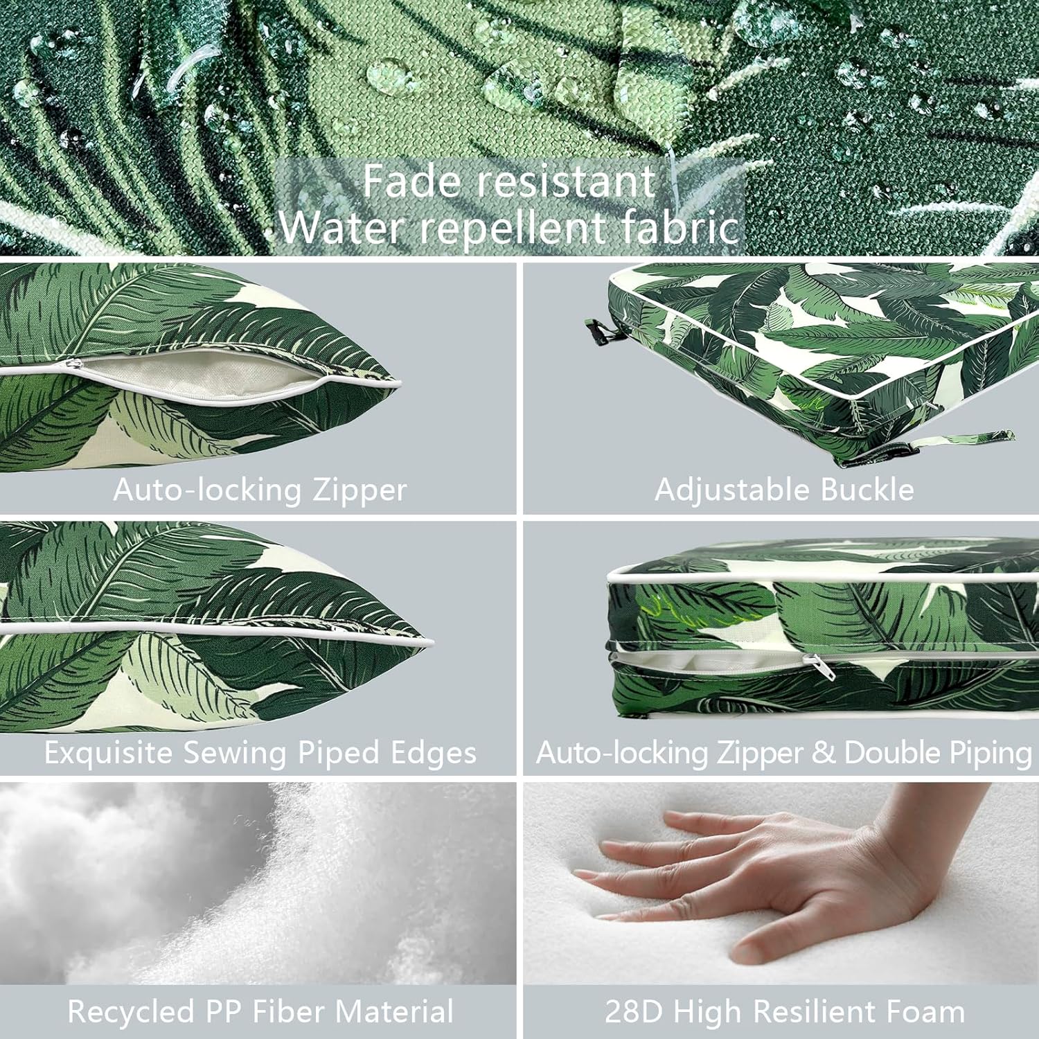 LVTXIII Outdoor Deep Seat Cushion 24"x24"x4" Patio Seat and Back Cushion Set Seasonal Chair Cushion for Dining Arm Chairs, Wicker Chairs and Garden Furniture Decoration, Swaying Palms Green