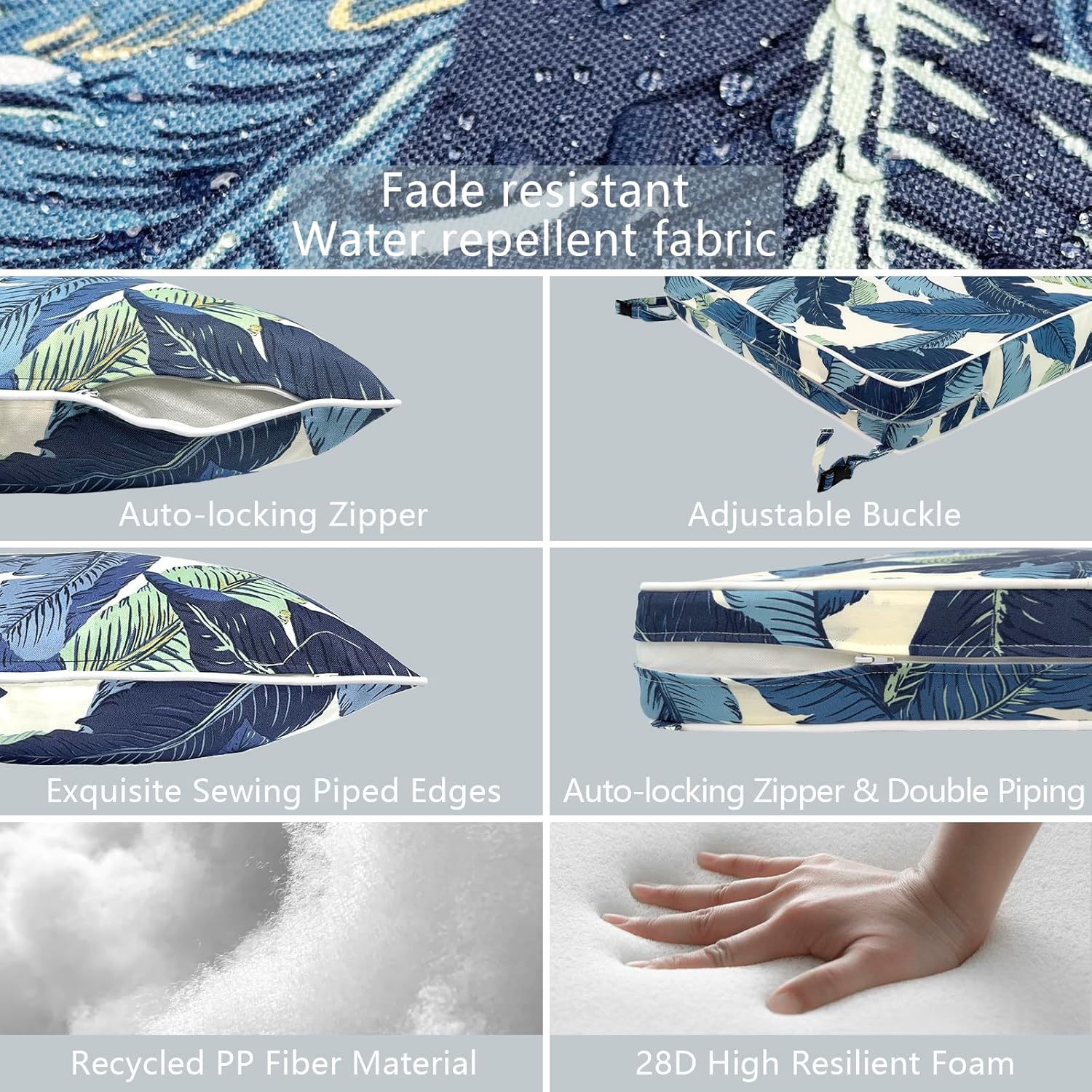 - ⭐Material: Made of 100% durable polyester fabric and soft filling material. It’s water repellent and fade-resistant. Won’t fading under the direct sunlight over 500 hours. Cushions are filled with 28D high resilient foam, overstuffed construction for enhanced comfort and longevity.